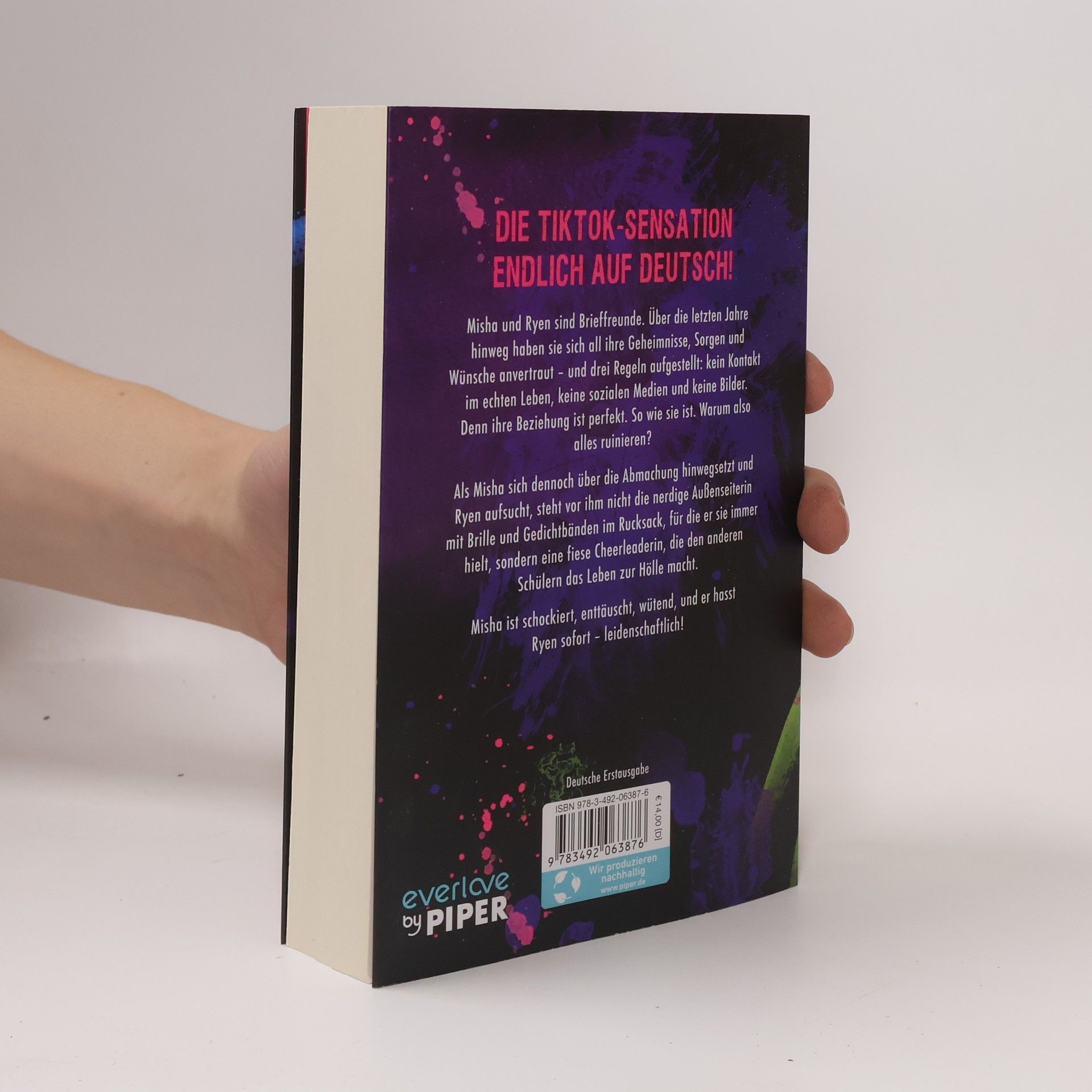 Misha und Ryen sind Brieffreunde. Sie haben sich über Jahre hinweg all ihre Geheimnisse, Sorgen und Wünsche anvertraut – und sie haben drei Regeln: kein Kontakt im echten Leben, keine sozialen Medien und keine Bilder. Denn das, was sie miteinander haben, ist perfekt. Warum es also ruinieren? Als Misha sich dennoch über die Abmachung hinwegsetzt und Ryen aufsucht, steht vor ihm nicht die nerdige Außenseiterin mit Brille und Gedichtbänden im Rucksack, für die er sie hielt, sondern eine fiese Cheerleaderin, die den anderen Schülern das Leben zur Hölle macht. Misha ist schockiert, enttäuscht, wütend, und er hasst Ryen sofort – leidenschaftlich!