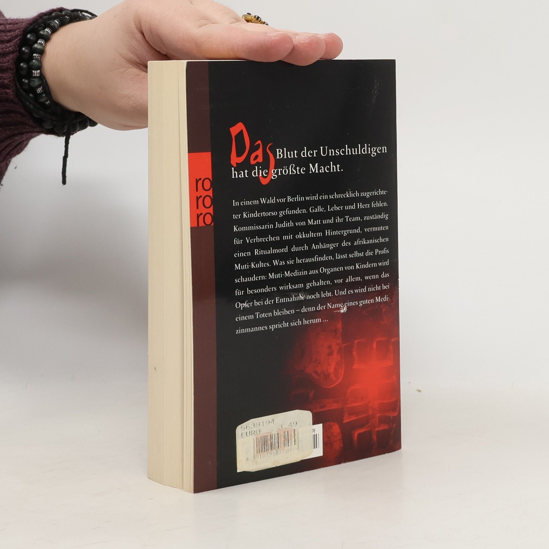 Das Blut der Unschuldigen hat die größte Macht In einem Wald vor Berlin wird ein schrecklich zugerichteter Kindertorso gefunden. Galle, Leber und Herz fehlen. Kommissarin Judith von Matt und ihr Team, zuständig für Verbrechen mit okkultem Hintergrund, vermuten einen Ritualmord durch Anhänger des afrikanischen Muti-Kultes. Was sie herausfinden, lässt selbst die Profis schaudern: Muti-Medizin aus Organen von Kindern wird für besonders wirksam gehalten, vor allem, wenn das Opfer bei der Entnahme noch lebt. Und es wird nicht bei einem Toten bleiben – denn ein guter Medizinmann spricht sich herum …