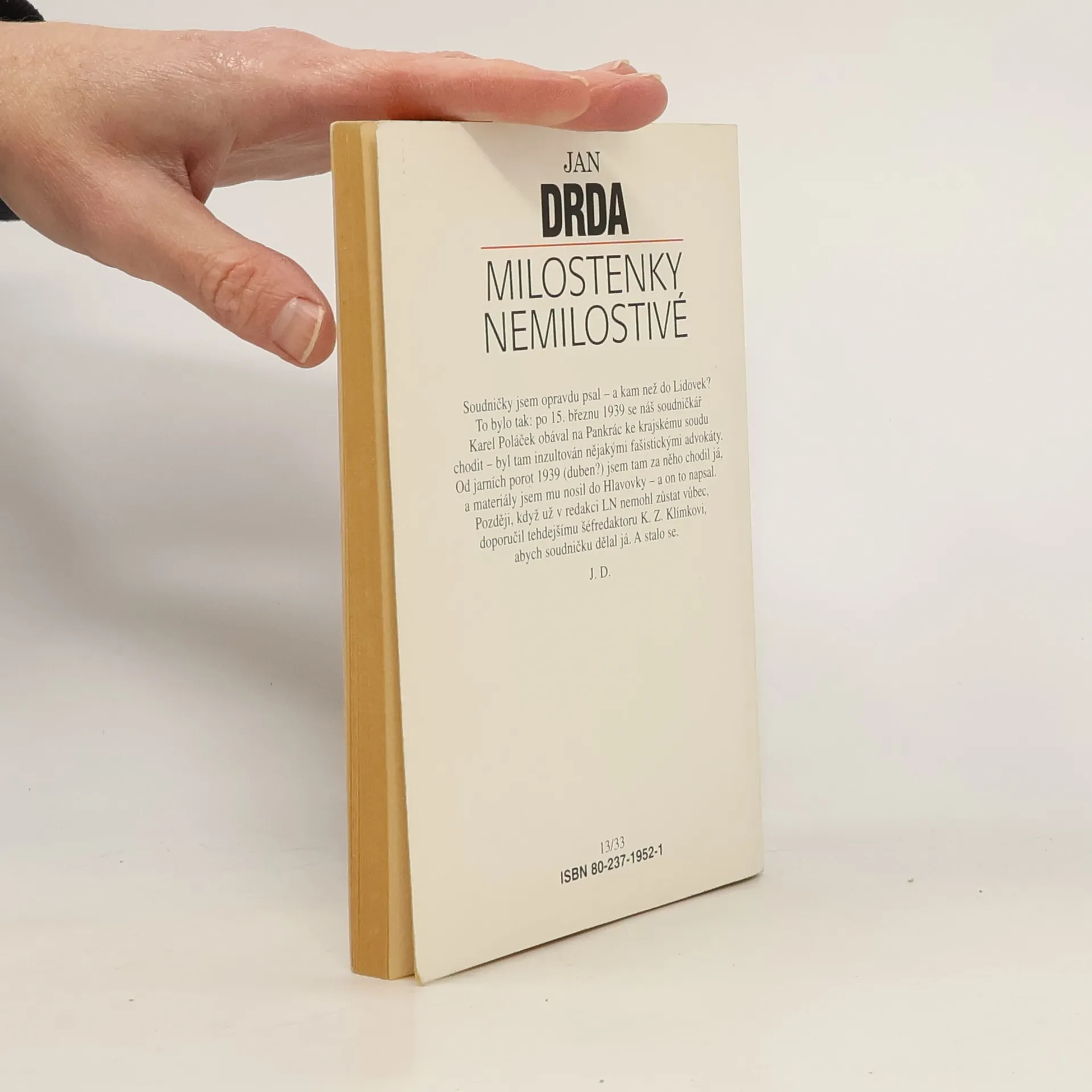 Soudničky 1939 - 1940. Slavnou rubriku soudniček v Lidových novinách převzal na čas Jan Drda po Karlu Poláčkovi- když ten se nejprve obával chodit k soudu, pak už jako žid nesměl zůstat ani v redakci. Z dnešních novin soudničky vymizely- až při přečtení Drdova souboru napadne čtenáře, jaká je to škoda. Drobné vtipné črty, připomínající Čapkovy "kapesní" povídky, jenže ze skutečného života, z jednání konkrétního pražského soudu konkrétního dne. Inu, hříšní lidé z města pražského a jejich osudy, půvabné i nostalgií jiného času, kdy jako by se žilo pomaleji a mírněji, kradlo, mordovalo a podvádělo nějak laskavěji a lidštěji.