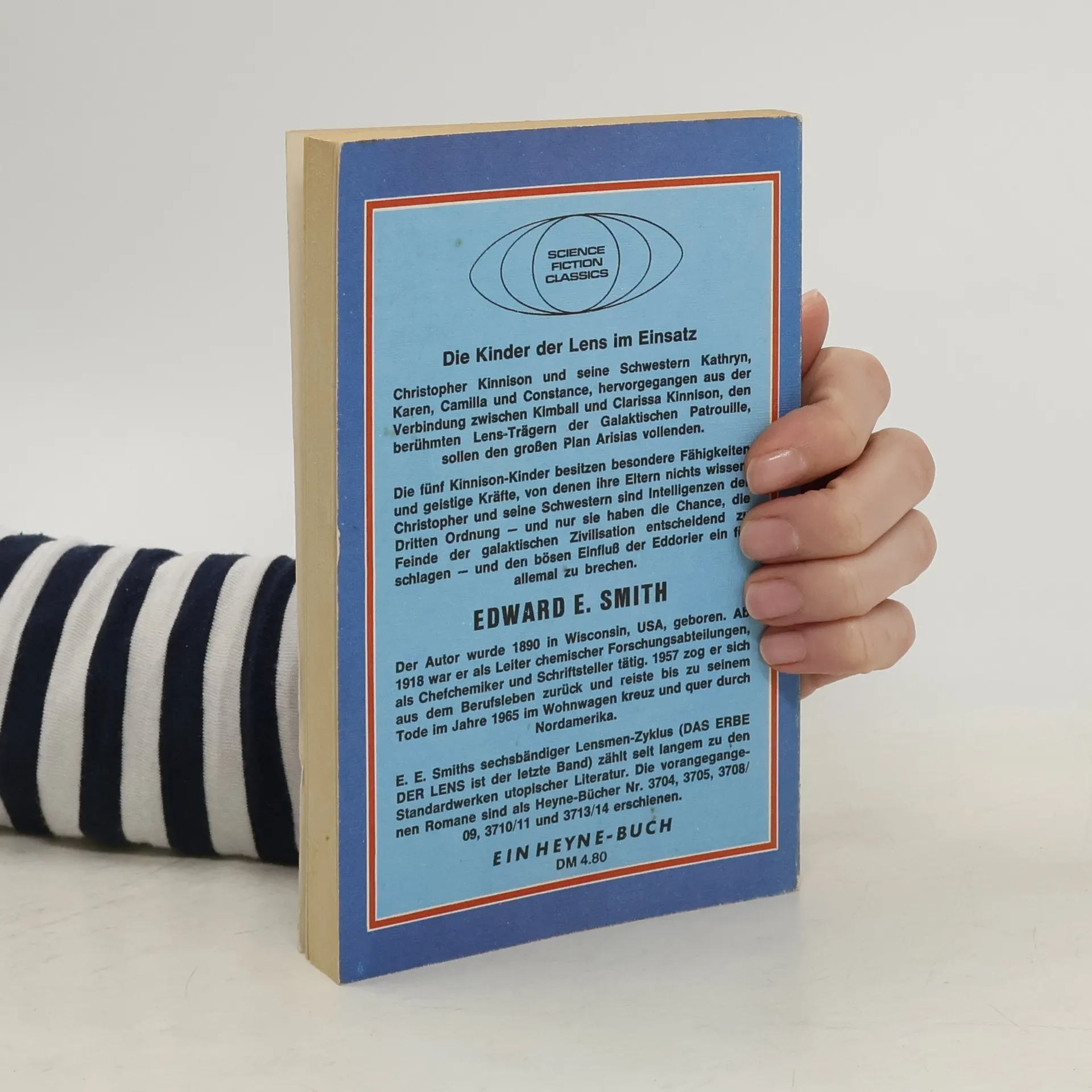 Seit vielen Jahrtausenden tobt der Kampf zwischen den beiden mächtigen Sternenreichen Arisia und Eddore. Auf einem unvorstellbar hohen Stand der Technik angelangt, ringen die beiden Rassen um Einflußsphären und um die Beherrschung der eroberten und unterworfenen Sternensysteme. Eines Tages tauchen die ersten Vortrupps der Eddorier auf, um die Erde in ihrem Sinne zu manipulieren, und die Menschheit gerät unversehens in die galaxisweite Auseinandersetzung. Christopher Kinnisaon und seine Schwestern Kathryn, Karen, Camilla und Constance, hervorgegangen aus der Verbindung zwischen Kimball und Clarissa Kinnison, den berühmten Lens-Trägern der Galaktischen Patrouille, sollen den großen Plan Arisias vollenden. Die fünf Kinnison-Kinder besitzen besondere Fähigkeiten und geistige Kräfte, von denen ihre Eltern nichts wissen. Christopher und seine Schwestern sind Intelligenzen der Dritten Ordnung - und nur sie haben die Chance, die Feinde der galaktischen Zivilisation entscheidend zu schlagen - und den bösen Einfluß der Eddorier ein für allemal zu brechen. "Doc" Edward Elmer Smith (1890-1965) war der König der Space Opera in den vierziger Jahren, der "Goldenen Zeit" der amerikanischen Science Fiction, und sein "Lensmen"-Zyklus war ihr absoluter Höhepunkt. Heyne 06/4190 3. Auflage 1991