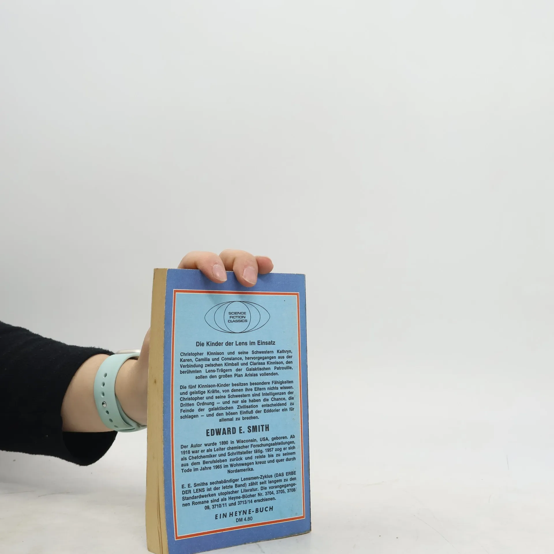 Seit vielen Jahrtausenden tobt der Kampf zwischen den beiden mächtigen Sternenreichen Arisia und Eddore. Auf einem unvorstellbar hohen Stand der Technik angelangt, ringen die beiden Rassen um Einflußsphären und um die Beherrschung der eroberten und unterworfenen Sternensysteme. Eines Tages tauchen die ersten Vortrupps der Eddorier auf, um die Erde in ihrem Sinne zu manipulieren, und die Menschheit gerät unversehens in die galaxisweite Auseinandersetzung. Christopher Kinnisaon und seine Schwestern Kathryn, Karen, Camilla und Constance, hervorgegangen aus der Verbindung zwischen Kimball und Clarissa Kinnison, den berühmten Lens-Trägern der Galaktischen Patrouille, sollen den großen Plan Arisias vollenden. Die fünf Kinnison-Kinder besitzen besondere Fähigkeiten und geistige Kräfte, von denen ihre Eltern nichts wissen. Christopher und seine Schwestern sind Intelligenzen der Dritten Ordnung - und nur sie haben die Chance, die Feinde der galaktischen Zivilisation entscheidend zu schlagen - und den bösen Einfluß der Eddorier ein für allemal zu brechen. "Doc" Edward Elmer Smith (1890-1965) war der König der Space Opera in den vierziger Jahren, der "Goldenen Zeit" der amerikanischen Science Fiction, und sein "Lensmen"-Zyklus war ihr absoluter Höhepunkt. Heyne 06/4190 3. Auflage 1991