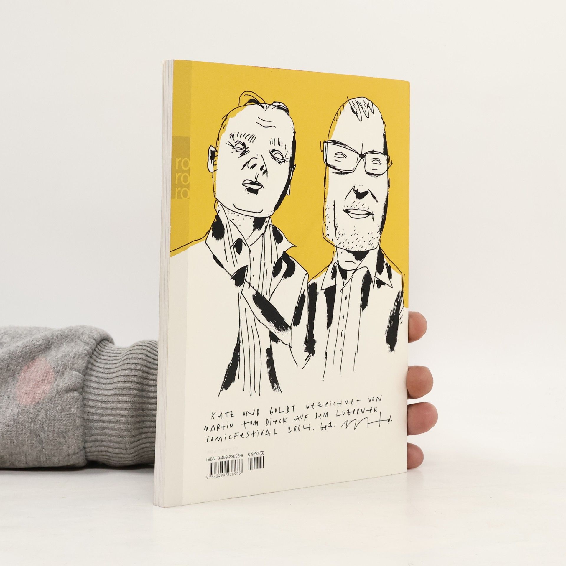 Die bisherigen Bände von Katz & Goldt waren 30 cm hoch und konnten daher nicht zu den Goldt- Taschenbüchern ins Regal gestellt werden, sodass Leser der „Zeit“ oder der „Titanic“ vergebens nach ihnen Ausschau hielten, genau wie all jene, die durch die viel besuchte Internet-Seite katzundgoldt. de auf das Duo aufmerksam geworden waren. Bei rororo daher jetzt im kleineren Format.