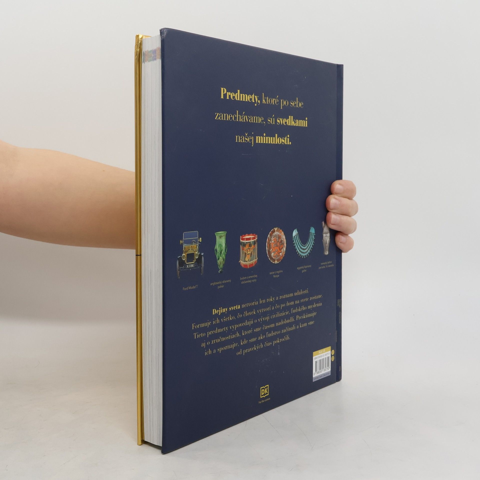 Spoznajte príbeh našej minulosti v rozprávaní predmetov, ktoré po sebe zanechávame Dejiny sveta nemusia byť len o rokoch a zozname udalostí. Tvorí ich všetko, čo človek vytvorí a čo po ňom na svete zostane. Od počiatku ľudských dejín nás definuje talent na výrobu vecí, od základných predmetov dennej potreby, ako sú misky a ručné sekery, až po vynálezy špičkových technológií. Tieto predmety vypovedajú o tom, čomu naši predkovia verili a čo si vážili, o vývoji ľudského myslenia aj o zručnostiach, ktoré sme časom nadobudli. Vďaka úžasným fotografiám uvidíte v tejto knihe predmety, ktoré si naši predkovia cenili – šperky, ktoré nosili Mezopotámci či cenné rituálne nádoby, ktoré používala dynastia Šang. Umožnia vám nahliadnuť do toho, čo každej kultúre dodávalo jej vlastnú identitu. Prehľadné delenie textu na obdobia od roku 20 000 pred n. l. až po súčasnosť čitateľovi pomôže ľahko sa orientovať a priradiť zobrazené predmety k jednotlivým obdobiam vo vývoji civilizácie. Preskúmajte ich a spoznajte, kde sme ako ľudia začínali a sme od pravekých čias pokročili.