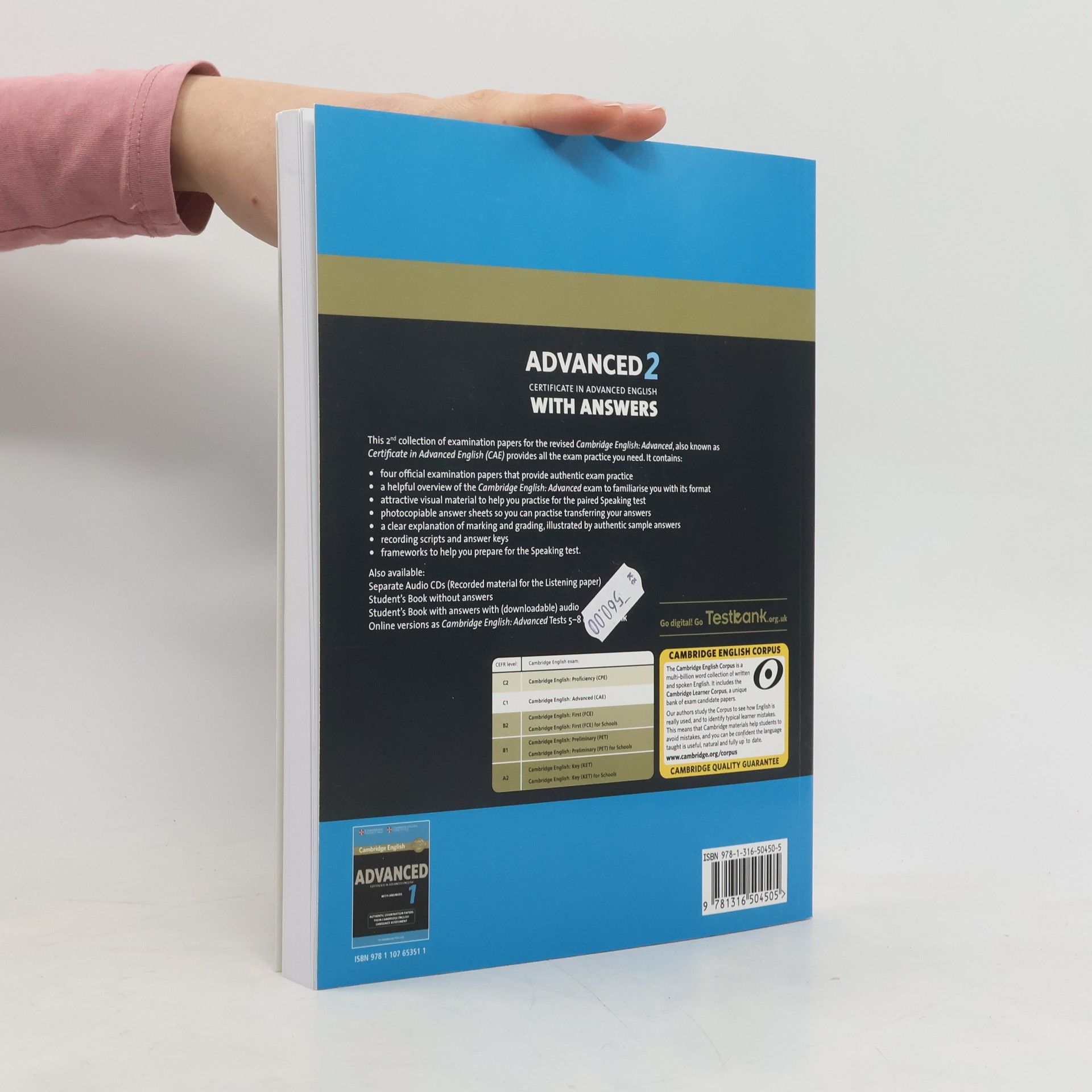 Four official examination papers for the Cambridge English: Advanced (CAE) examination from Cambridge English Language Assessment. These examination papers for the Cambridge English: Advanced (CAE) exam provide the most authentic exam preparation available, allowing candidates to familiarise themselves with the content and format of the exam and to practise useful exam techniques. The Student's Book is also available in a 'without answers' edition. These tests are also available as Cambridge English: Advanced Tests 5-8 on Testbank.org.uk