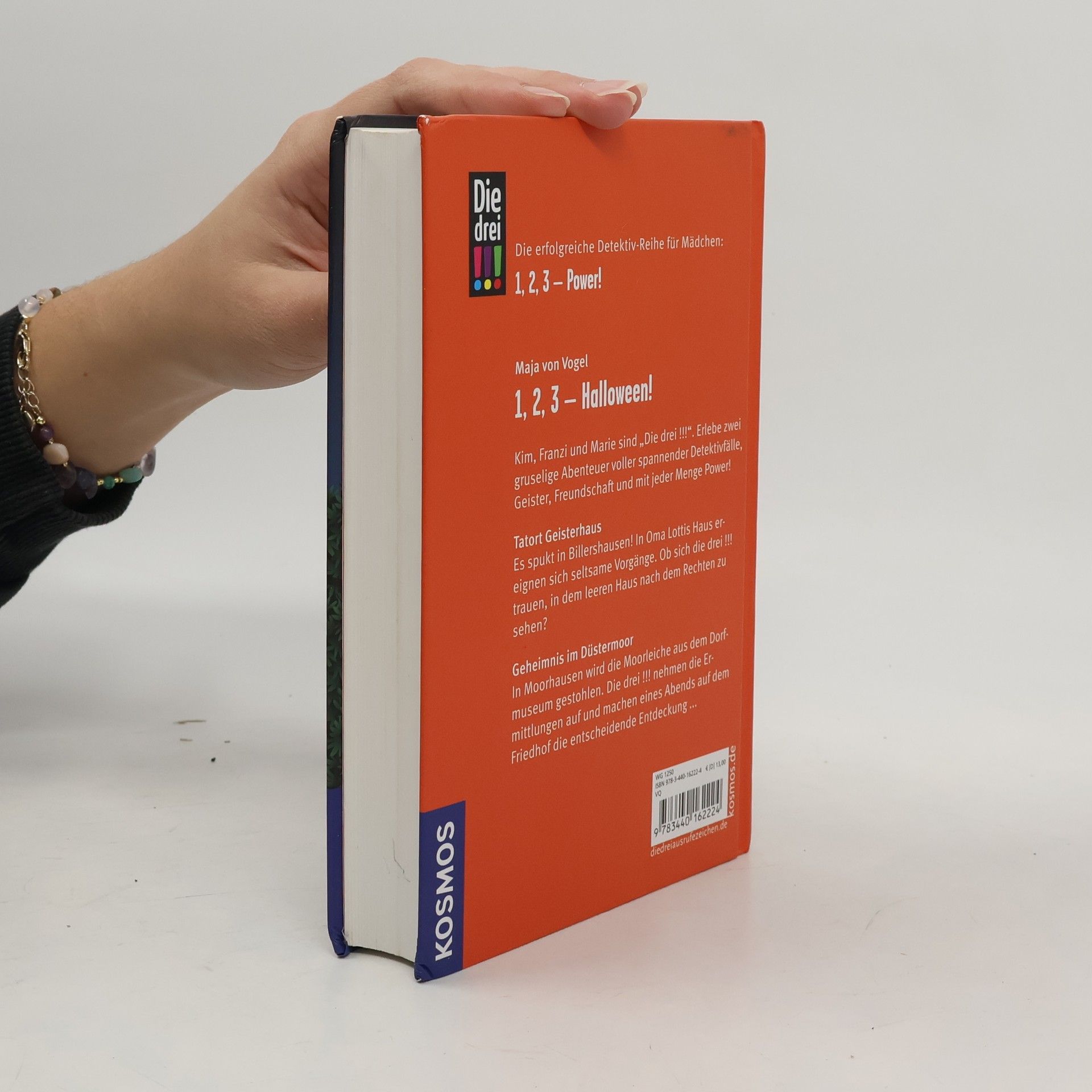 Kim, Franzi und Marie sind „Die drei !!!“. Mutig und clever ermitteln die drei Detektivinnen und sind jedem Fall gewachsen. In diesem Doppelband müssen die drei Freundinnen gleich zwei gruselige Fälle lösen! Tatort Geisterhaus: Es spukt in Billershausen! Oder was steckt hinter den seltsamen Vorgängen in Oma Lottis Haus? Ob sich die drei !!! trauen sollen, in dem leeren Haus nach dem Rechten zu sehen? Geheimnis im Düstermoor: Schnell ist es vorbei mit entspannten Herbstferien, denn in Moorhausen wird die Moorleiche aus dem Dorfmuseum gestohlen und die drei müssen die Ermittlungen aufnehmen. Eines Abends machen sie auf dem Friedhof die entscheidende Entdeckung …