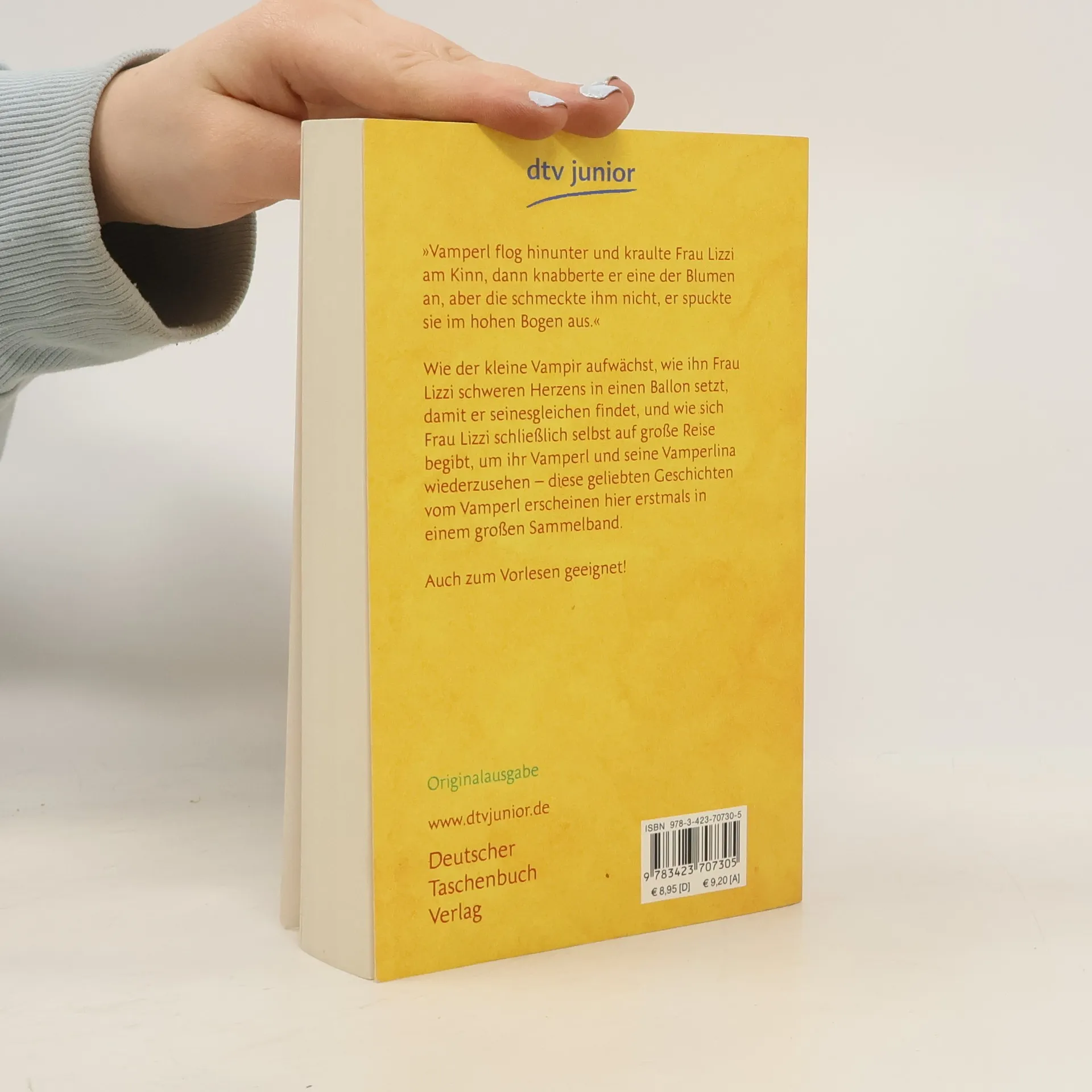 Ein Lieblingsbuch für die ganze Familie »Das Vamperl flog hinunter und kraulte Frau Lizzi am Kinn, dann knabberte er eine der Blumen an, aber die schmeckte ihm nicht, er spuckte sie im hohen Bogen aus.« Wie der kleine Vampir aufwächst, wie ihn Frau Lizzi schweren Herzens in einen Ballon setzt, damit er seinesgleichen findet, und wie sich Frau Lizzi schließlich selbst auf große Reise begibt, um Vamperl und seine Vamperlina wiederzusehen – diese geliebten Geschichten vom Vamperl erscheinen hier erstmals in einem Sammelband. Auch zum Vorlesen geeignet!