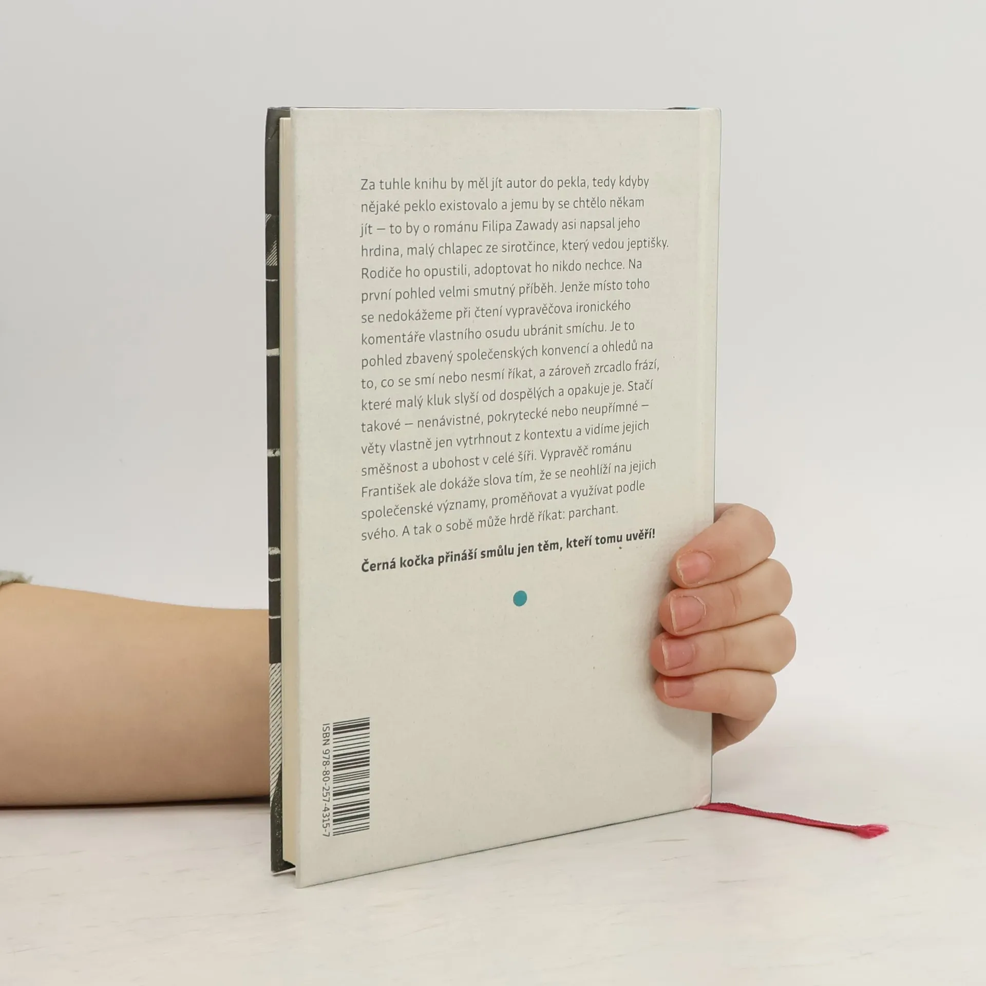 Za tuhle knihu by měl jít autor do pekla, tedy kdyby nějaké peklo existovalo a jemu by se chtělo někam jít – to by o románu Filipa Zawady asi napsal jeho hrdina. Malý chlapec ze sirotčince, který vedou jeptišky. Rodiče ho opustili, adoptovat ho nikdo nechce. Na první pohled velmi smutný příběh. Jenže místo toho se nedokážeme při čtení vypravěčova ironického komentáře vlastního osudu ubránit smíchu. Je to pohled zbavený společenských konvencí a ohledů na to, co se smí nebo nesmí říkat, a zároveň zrcadlo frází, které malý kluk slyší od dospělých a opakuje je. Stačí takové – nenávistné, pokrytecké nebo neupřímné – věty vlastně jen vytrhnout z jejich kontextu a vidíme jejich směšnost a ubohost v celé šíři. Vypravěč románu František ale dokáže slova tím, že se neohlíží na jejich společenské významy, proměňovat a využívat podle svého. A tak o sobě může hrdě říkat: parchant. Černá kočka přináší smůlu jen těm, kteří tomu uvěří.