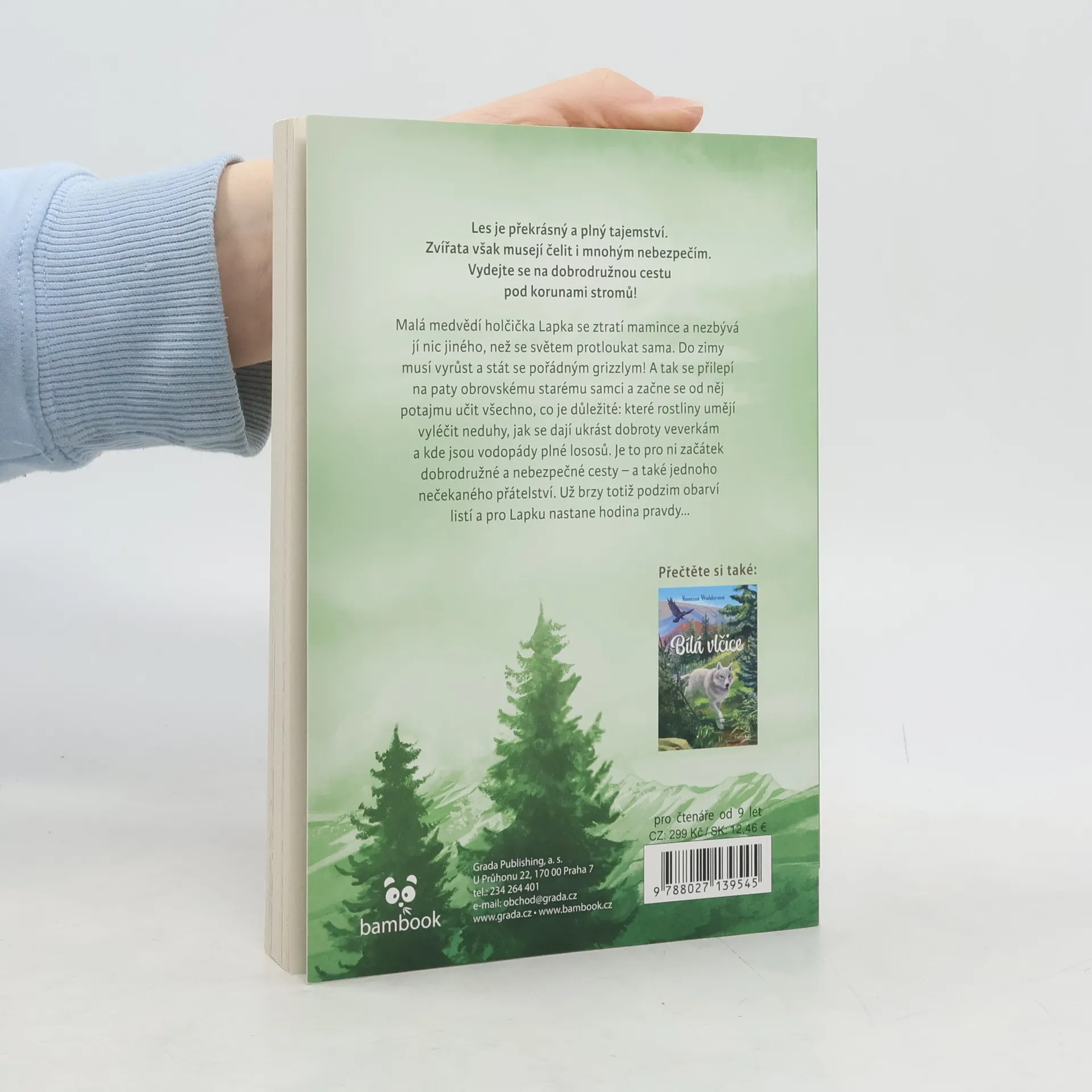 Les je překrásný a plný tajemství. Zvířata však musejí čelit i mnohým nebezpečím. Vydejte se na dobrodružnou cestu pod korunami stromů! Malá medvědí holčička Lapka se ztratí mamince a nezbývá jí nic jiného, než se světem protloukat sama. Do zimy musí vyrůst a stát se pořádným grizzlym! A tak se přilepí na paty obrovskému starému samci a začne se od něj potajmu učit všechno, co je důležité: které rostliny umějí vyléčit neduhy, jak se dají ukrást dobroty veverkám a kde jsou vodopády plné lososů. Je to pro ni začátek dobrodružné a nebezpečné cesty – a také jednoho nečekaného přátelství. Už brzy totiž podzim obarví listí a pro Lapku nastane hodina pravdy Kniha o jednom nevšedním putování vám také nabídne spoustu informací a zajímavostí o životě grizzlyů.