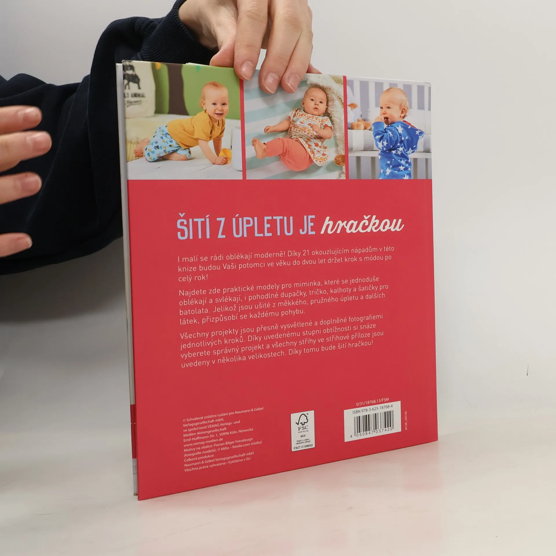 Najdete zde praktické modely pro miminka, které se jednoduše oblékají a svlékají i pohodlné dupačky, tričko, kalhoty či šatičky pro batolata. Jelikož jsou ušité z měkkého, pružného úpletu a dalších látek, přizpůsobí se každému pohybu.Všechny projekty jsou přesně vysvětlené a doplněné fotografiemi jednotlivých kroků. Díky uvedenému stupni obtížnosti si snáze vyberete správný projekt. Všechny střihy ve střihové příloze jsou uvedeny v několika velikostech.