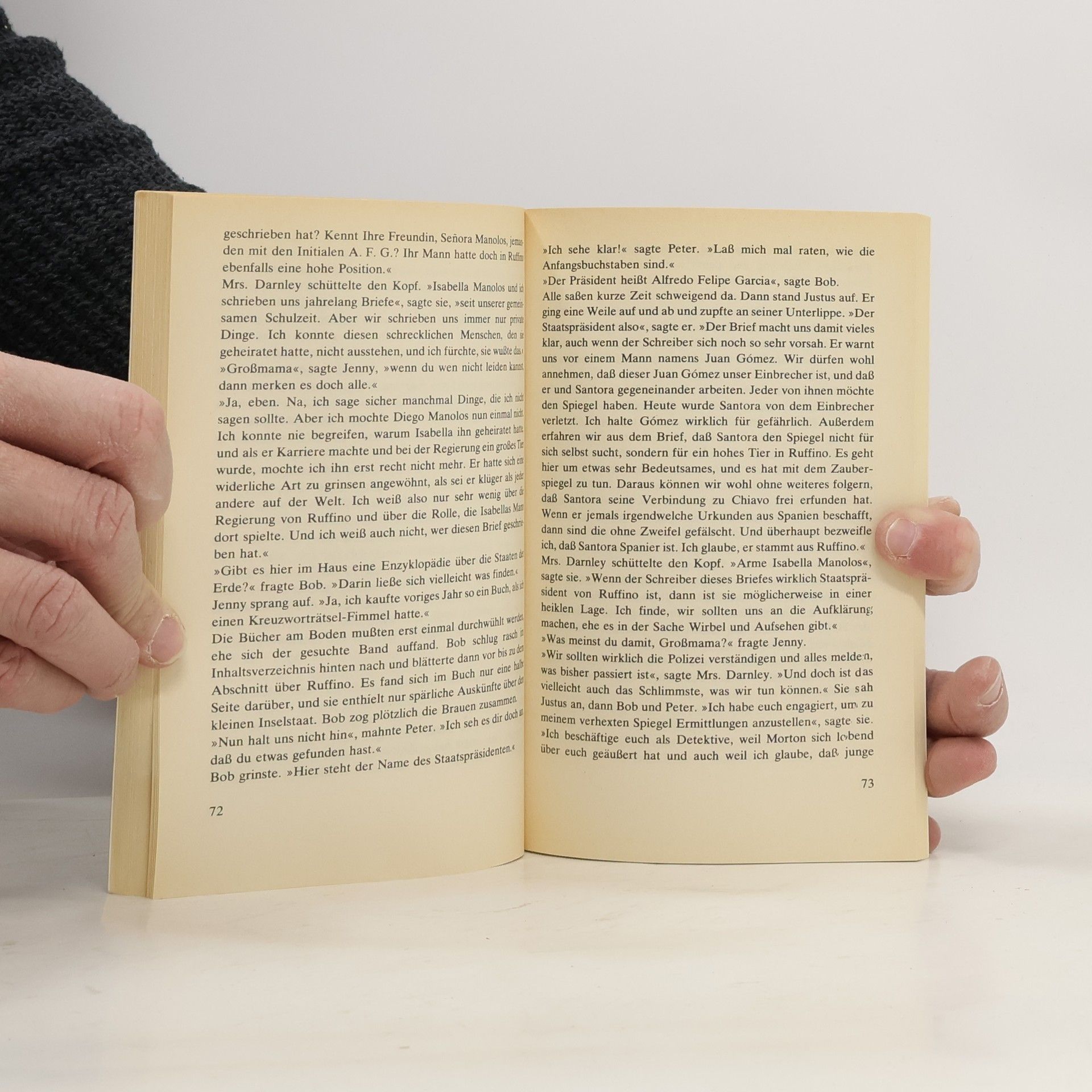 Wenn jemand erzählt, in einem spanischen Spiegel spuke es, und nachts sind auch noch seltsame Geräusche zu hören, dann kriegt vor allem Justus weniger eine Gänsehaut, als vielmehr Lust, diesen Dingen auf den Grund zu gehen. Doch kaum beginnen die drei ??? zu ermitteln, häufen sich merkwürdige Zwischenfälle.