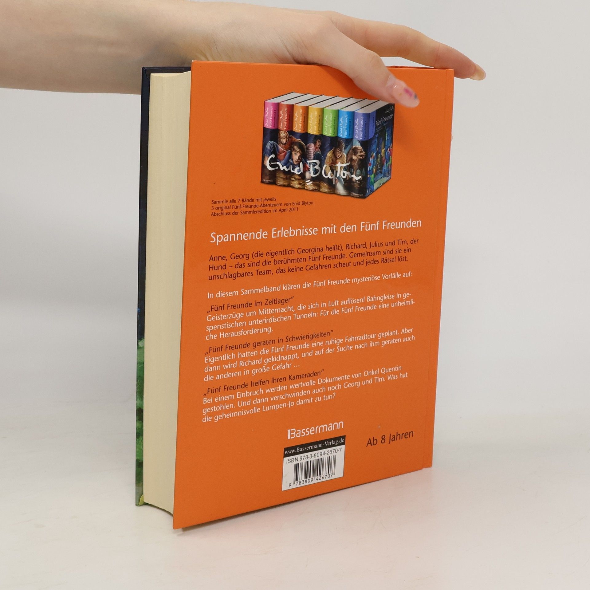 Spannende Erlebnisse mit den Fünf Freunden Seit über 50 Jahren fiebern Kinder mit, wenn die Fünf Freunde Anne, Georg (die eigentlich Georgina heißt), Richard, Julius und der Hund Tim in alten Gemäuern, dunklen Höhlen oder unterirdischen Gängen verborgene Schätze aufspüren oder sich gegen finstere Gestalten behaupten. In diesem Sammelband haben es die Fünf Freunde mit mysteriösen Vorfällen zu tun: Fünf Freunde im ZeltlagerGeisterzüge um Mitternacht, die sich in Luft auflösen! Bahngleise in gespenstischen unterirdischen Tunneln: Für die Fünf Freunde eine unheimliche Herausforderung. Fünf Freunde geraten in SchwierigkeitenEigentlich hatten die Fünf Freunde eine ruhige Fahrradtour geplant. Aber dann wird Richard gekidnappt, und auf der Suche nach ihm geraten auch die anderen in große Gefahr … Fünf Freunde helfen ihren KameradenBei einem Einbruch werden wertvolle Dokumente von Onkel Quentin gestohlen. Und dann verschwinden auch noch Georg und Tim. Was hat die geheimnisvolle Lumpen-Jo damit zu tun?