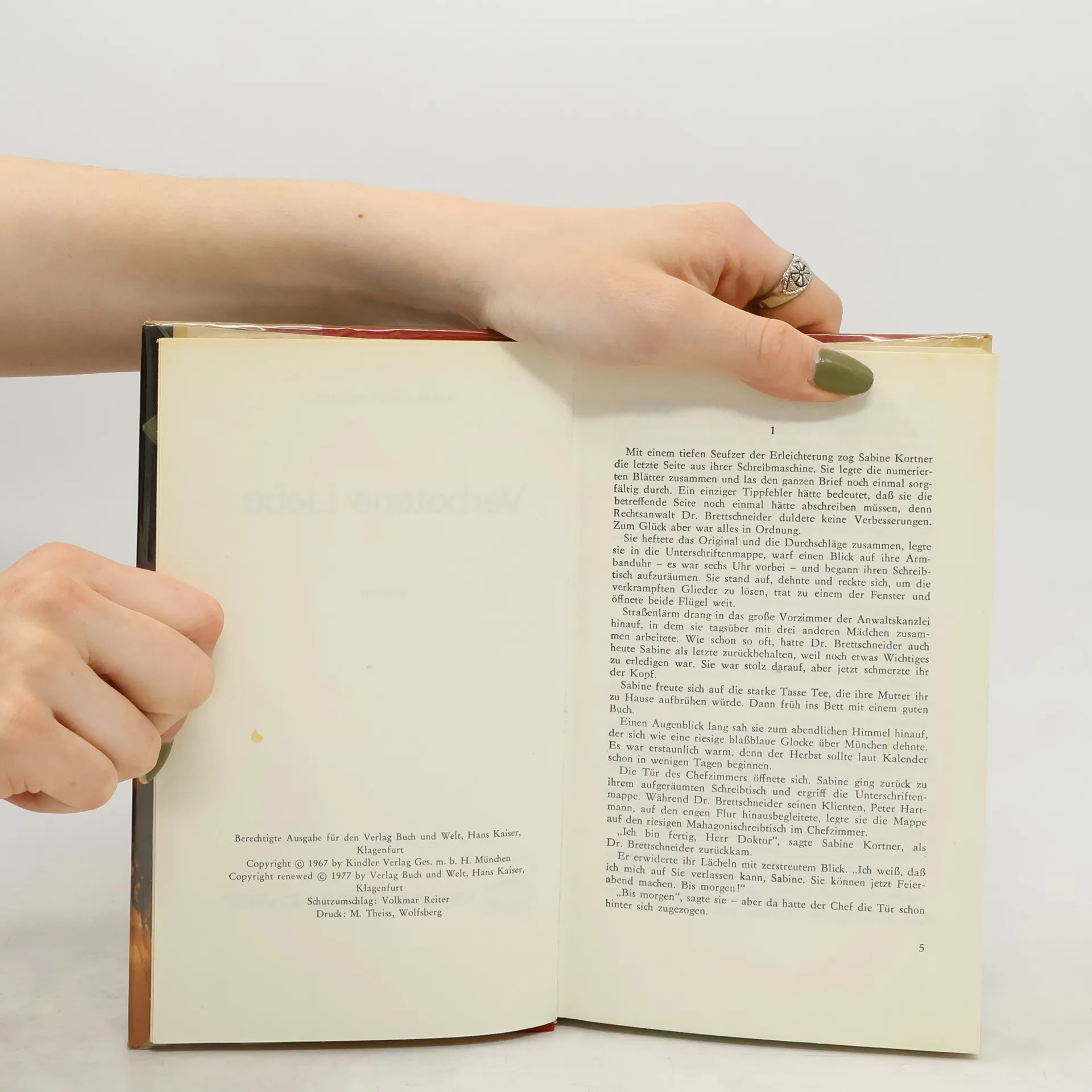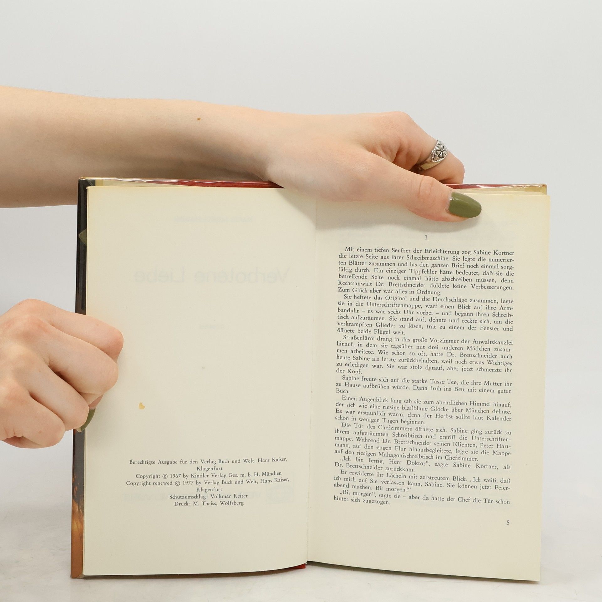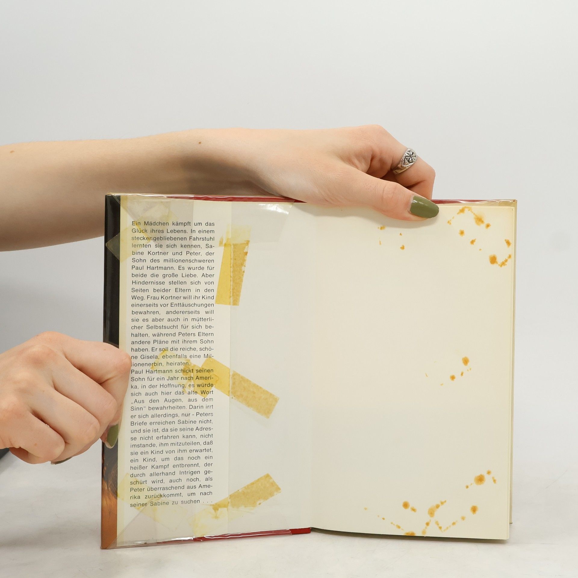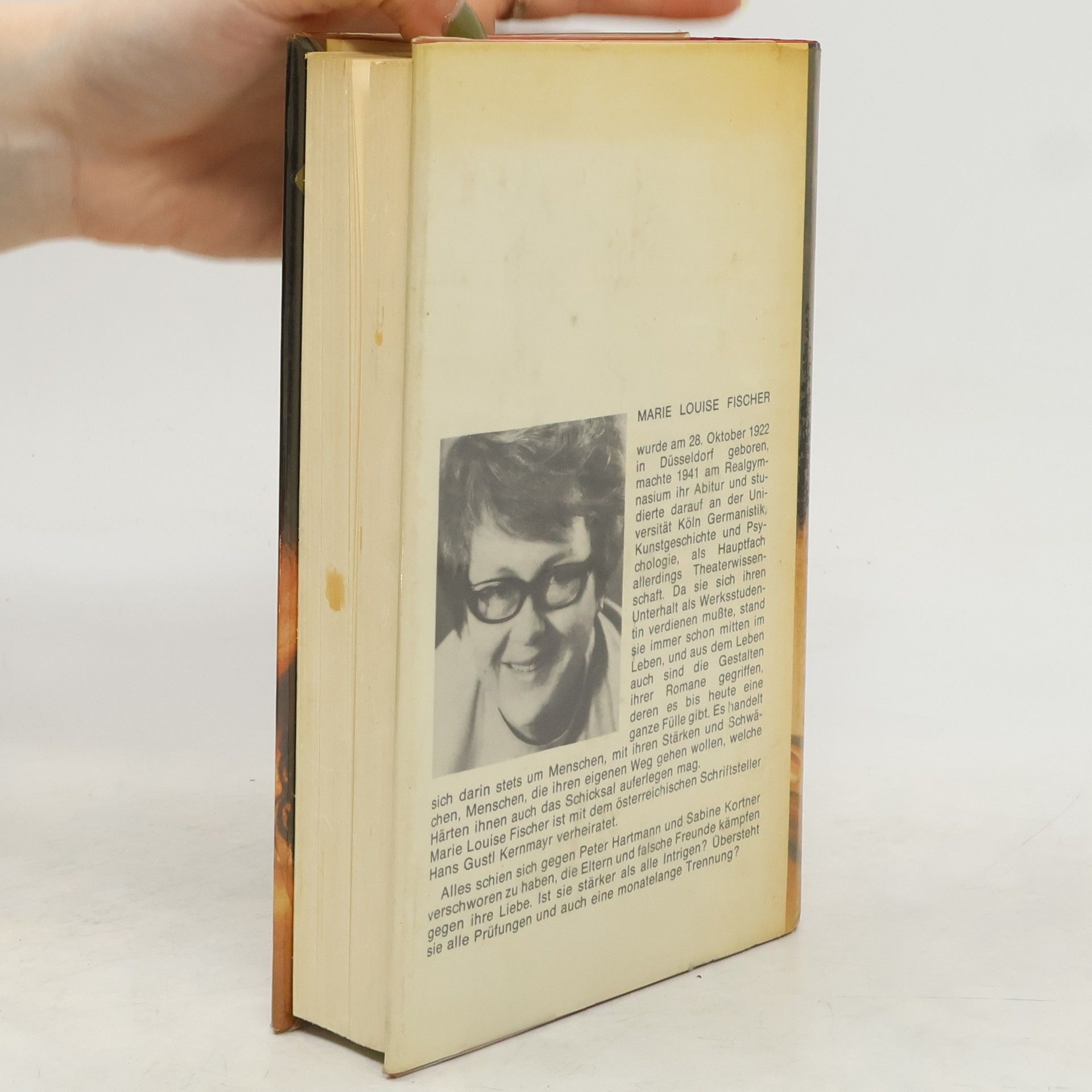 In einem steckengebliebenen Fahrstuhl lernen sich Sabine Kortner und Peter, der Sohn des wohlhabenden Paul Hartmann, kennen und verlieben sich. Ihre große Liebe wird jedoch von den Eltern beider Seiten in Frage gestellt. Sabines Mutter möchte ihre Tochter einerseits vor Enttäuschungen schützen, hat aber auch eigene egoistische Interessen. Peters Eltern hingegen planen, ihn mit der reichen und schönen Gisela zu verheiraten, einer Millionenerbin. Paul Hartmann greift zu einem klassischen Mittel: Er schickt Peter für ein Jahr nach Amerika, ohne dass dieser erfährt, dass Sabine ein Kind von ihm erwartet. Während Peters Abwesenheit ist Sabine allein und sieht sich zahlreichen Intrigen ausgesetzt. Die Situation eskaliert, bis Peter überraschend aus Amerika zurückkehrt. Marie Louise Fischer, 1922 in Düsseldorf geboren, arbeitete nach ihrem Studium als Lektorin bei der Prag-Film. 1945 wurde sie in der Goldenen Stadt interniert und musste über ein Jahr Zwangsarbeit leisten. Ihr erster großer Erfolg kam 1951 mit dem Kriminalroman "Zerfetzte Segel". Danach etablierte sie sich als erfolgreiche Unterhaltungs- und Jugendschriftstellerin. Ihre über 100 Romane und Krimis sowie mehr als 50 Kinder- und Jugendbücher wurden in 23 Sprachen übersetzt und erreichten in Deutschland eine Gesamtauflage von über 70 Millionen Exemplaren. Sie verstarb am 2. April 2005 in Prien am Chiemsee.