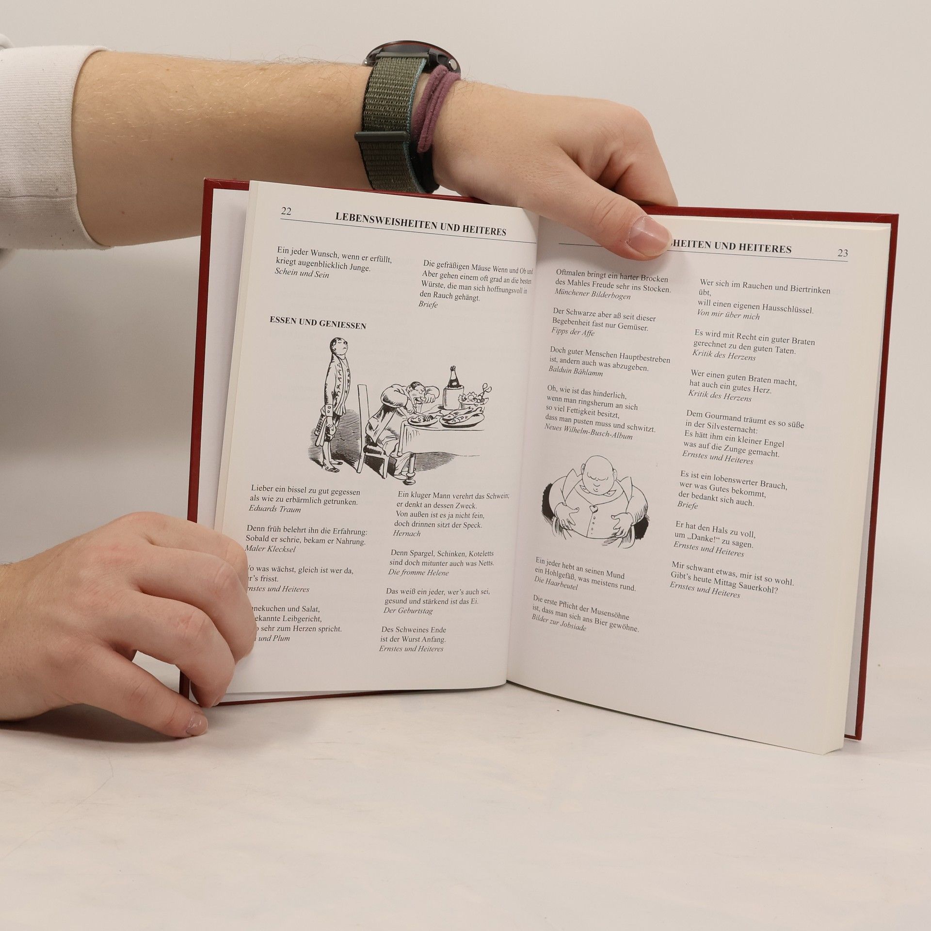 Dieser ansprechend aufgemachte Geschenkband sorgt mit über 700 Spruchweisheiten und den Gedichten aus Wilhelm Buschs Werken "Kritik des Herzens", "Schein und Sein" sowie "Zu guter letzt" im Einklang mit zeichnungen aus seinem Gesamtwerk für großes Lesevergnügen. Wer zudem einen passenden Satz oder einen humorvollen Vers sucht, um Briefe, Glückwünsche oder reden geistvoll anzureichern, wird in dieser liebevoll ausgestatteten Sammlung mehr als fündig.