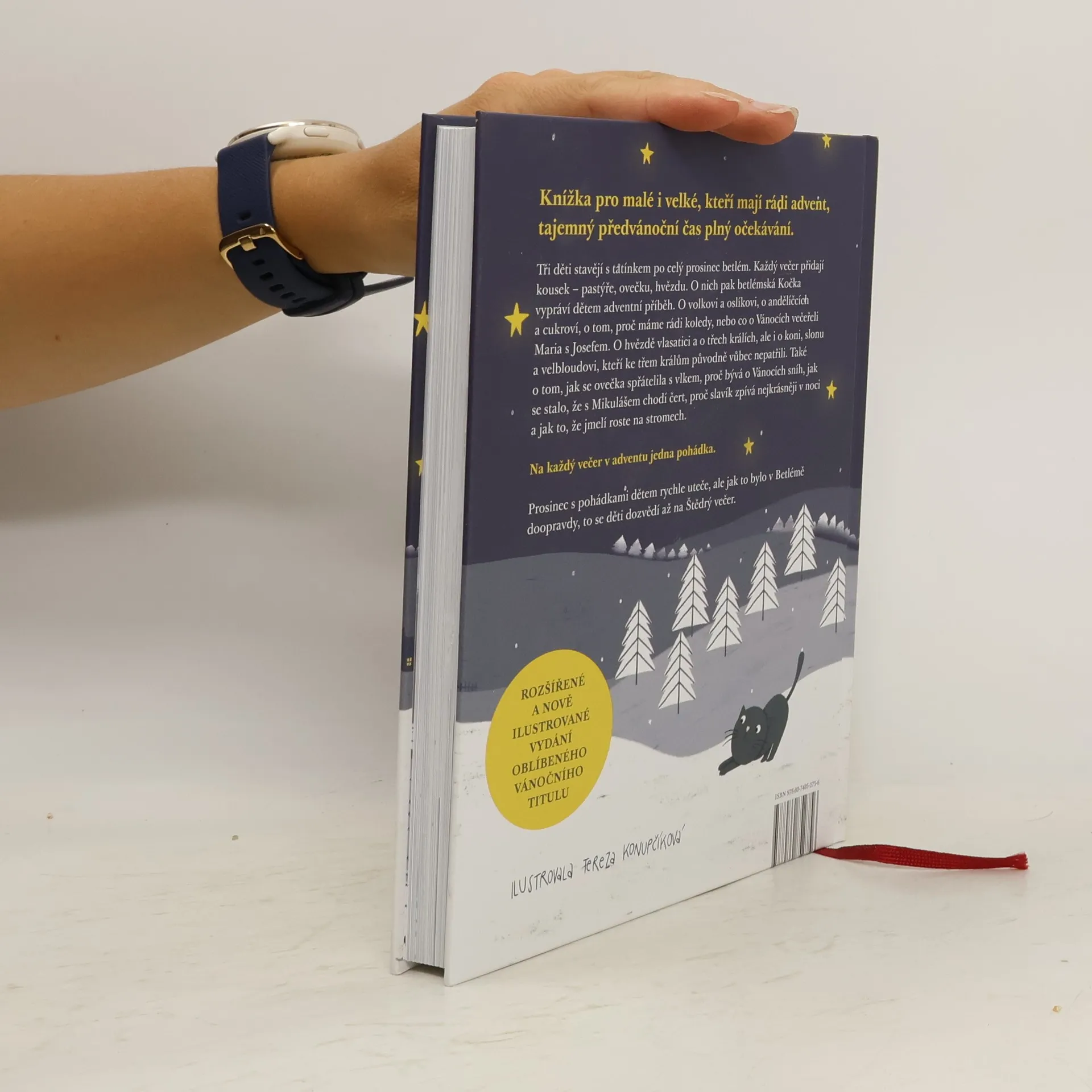 Knížka pro malé i velké, kteří mají rádi advent, tajemný předvánoční čas plný očekávání. Tři děti stavějí s tatínkem po celý prosinec betlém. Každý večer přidají kousek – pastýře, ovečku, hvězdu. O nich pak betlémská Kočka vypráví dětem adventní příběh. O volkovi a oslíkovi, o andělíčcích a cukroví, o tom, proč máme rádi koledy, nebo co o Vánocích večeřeli Maria s Josefem. O hvězdě vlasatici a o třech králích, ale i o koni, slonu a velbloudovi, kteří ke třem králům původně vůbec nepatřili. Také o tom, jak se ovečka spřátelila s vlkem, proč bývá o Vánocích sníh, jak se stalo, že s Mikulášem chodí čert, proč slavík zpívá nejkrásněji v noci a jak to, že jmelí roste na stromech. Na každý večer v adventu jedna pohádka. Prosinec s pohádkami dětem rychle uteče, ale jak to bylo v Betlémě doopravdy, to se děti dozvědí až na Štědrý večer.
