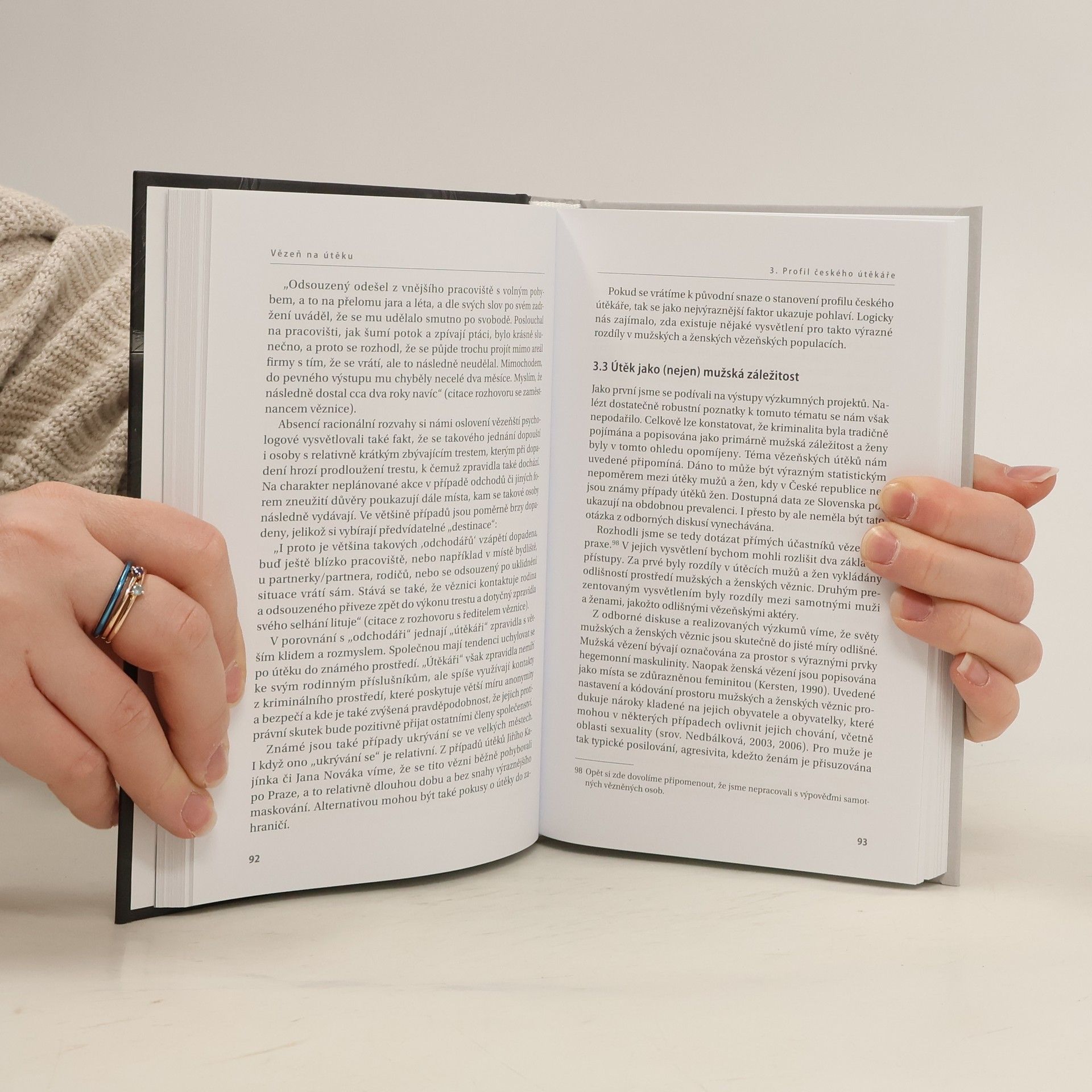 Kniha Vězeň na útěku zavede čtenáře do světa za vysokými zdmi s ostnatým drátem a představí fenomén, který je sice kvantitativně ojedinělý, zato však úzce provázaný s životy nejen vězněných osob, ale také dalších aktérů vězeňského světa. Autoři v knize diskutují možnosti definování vězeňských útěků, vysvětlení jejich příčin a na základě práce s dostupnými daty vyvrací nepravdy spojené s interpretací útěků z vězeňských zařízení. Hledají odpovědi na otázky kdo, proč a jak z vězení utíká. Prostřednictvím skutečných příběhů, které se odehrály v českém a zahraničím kontextu, přibližují historii i současnost vězeňských útěků a jejich rozmanité, fascinující a překvapivé provedení.