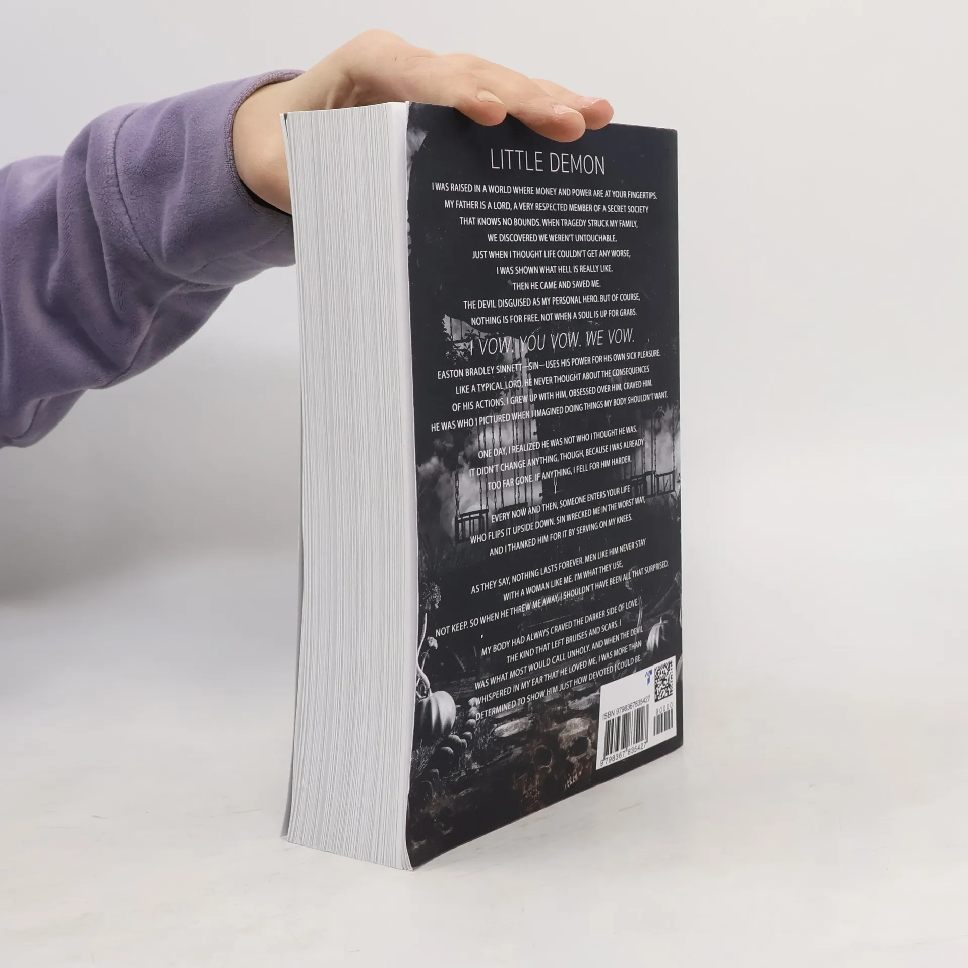 An all-new dark standalone romance from a bestselling author. Raised in a world of wealth and power, I was the daughter of a respected member of a secret society. When tragedy struck, we learned we weren’t untouchable. Just when I thought life couldn’t get worse, I was introduced to true hell. Then he arrived, my devil in disguise, my savior. But nothing comes without a price, especially when a soul is involved. Easton Bradley Sinnett—Sin—uses his power for his own twisted pleasure. Growing up, I was obsessed with him, craving what I knew I shouldn’t. One day, I realized he wasn’t who I thought, yet my feelings only deepened. Some people enter your life and turn it upside down; Sin wrecked me completely, and I found myself serving him in ways I never imagined. But I knew men like him don’t stay with women like me; I was merely a fleeting desire. When he discarded me, I shouldn’t have been surprised. My body had always yearned for the darker side of love, the kind that leaves marks. I was deemed unholy, and when the devil whispered that he loved me, I became determined to prove my devotion, no matter the cost.