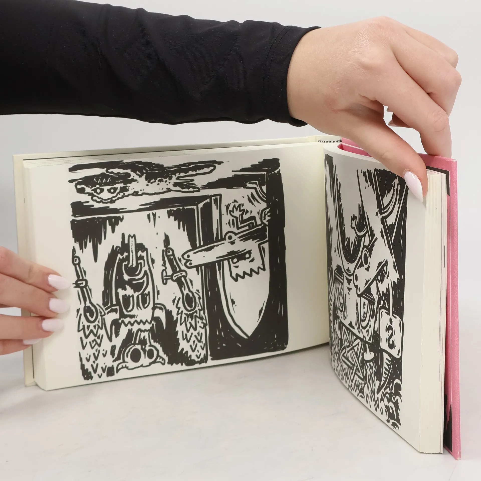 Růžové něco, Piňďa a Tři čuníci jsou obrázkové příběhy v jedné knížce. V půlce knížku otočte, čtěte z druhé strany, a možná vám to pak bude dávat smysl. Růžové něco vzniklo více méně během suchého února 2020.