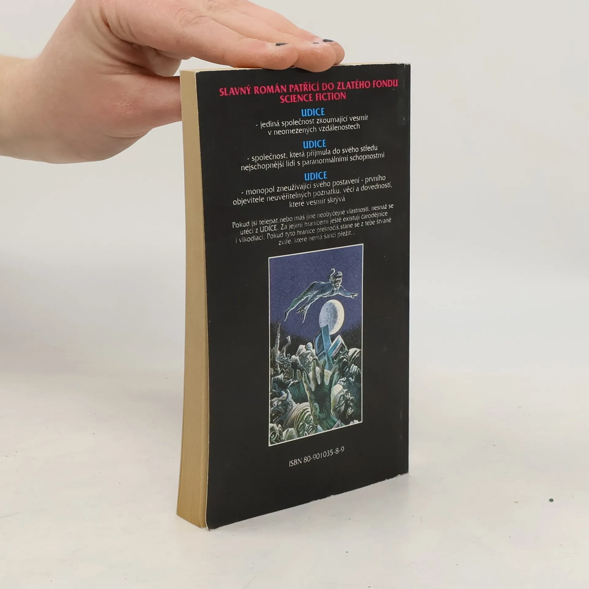 Udice – jediná společnost zkoumající vesmír v neomezených vzdálenostech. Udice – společnost, která přijmula do svého středu nejschopnější lidi s paranormálními schopnostmi. Udice – monopol zneužívající svého postavení – prvního objevitele neuvěřitelných poznatků, věcí a dovedností, které vesmír skrývá. Pokud jsi telepat, nebo máš jiné neobyčejné vlastnosti, nesnaž se utéci z Udice. Za jejími hranicemi ještě existují čarodějnice i vlkodlaci. Pokud tyto hranice překročíš, stane se z tebe štvané zvíře, které nemá šanci přežít… -- zdroj: www.legie.info --
