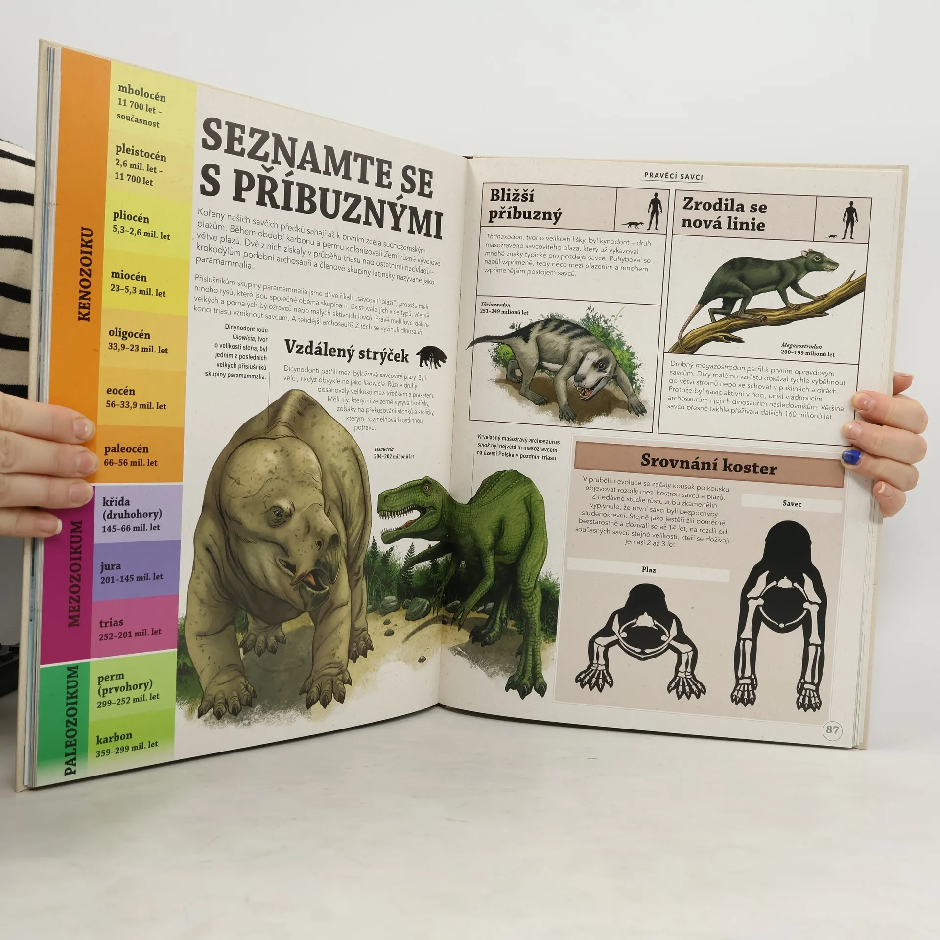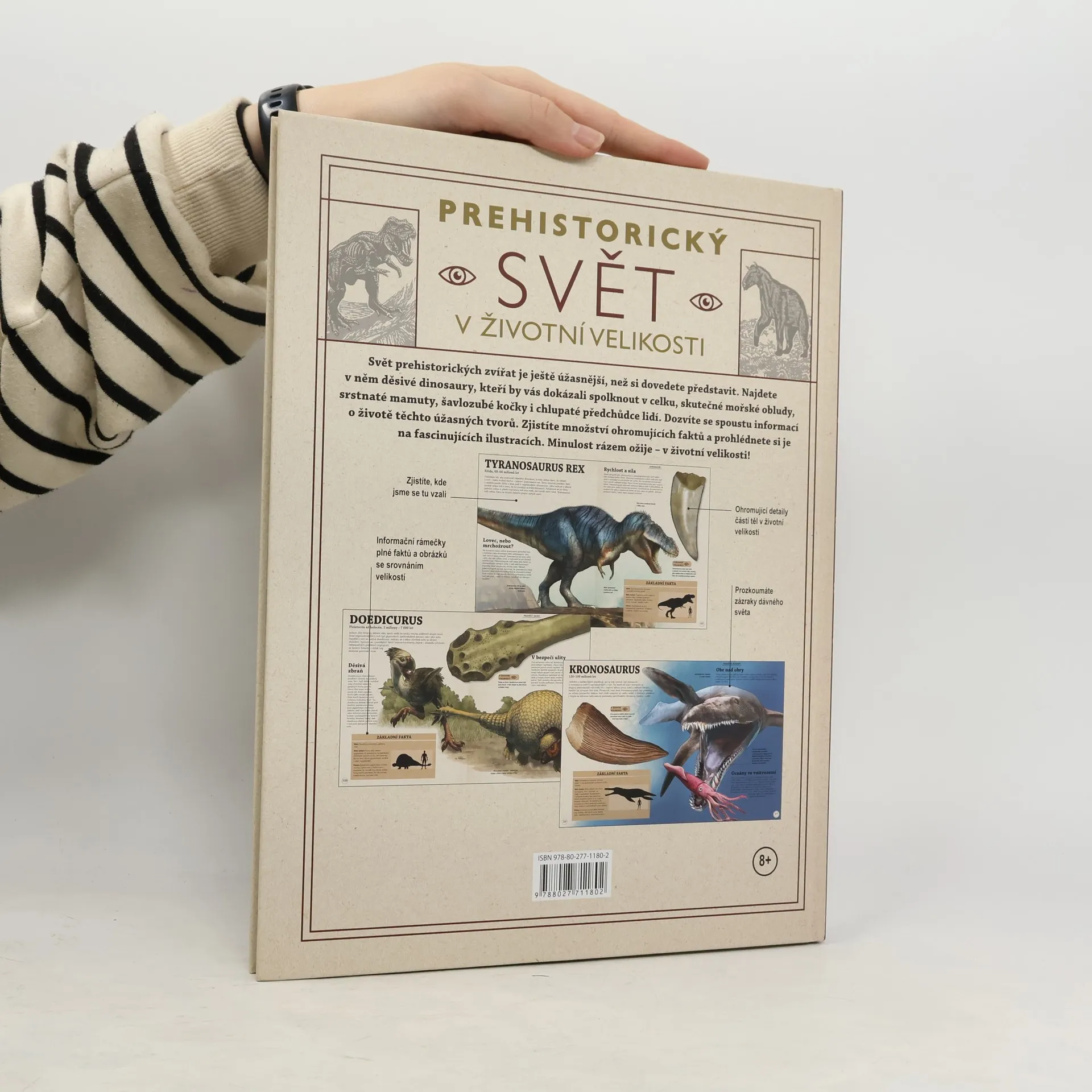 Svět prehistorických zvířat je ještě úžasnější, než si dovedete představit. Najdete v něm děsivé dinosaury, kteří by vás dokázali celé spolknout, skutečné mořské obludy, srstnaté mamuty, šavlozubé kočky i chlupaté předchůdce lidí. Dozvíte se spoustu věcí o životě těchto úžasných tvorů. Zjistíte spoustu fascinujících faktů a prohlédnete si je na ohromujících ilustracích. Minulost rázem ožije – v životní velikosti! Prozkoumáte zázraky dávného světa, ohromující detaily částí těl v životní velikosti, informační rámečky plné fascinujících faktů a obrázků se srovnáním velikosti i největší zázraky dávného světa.