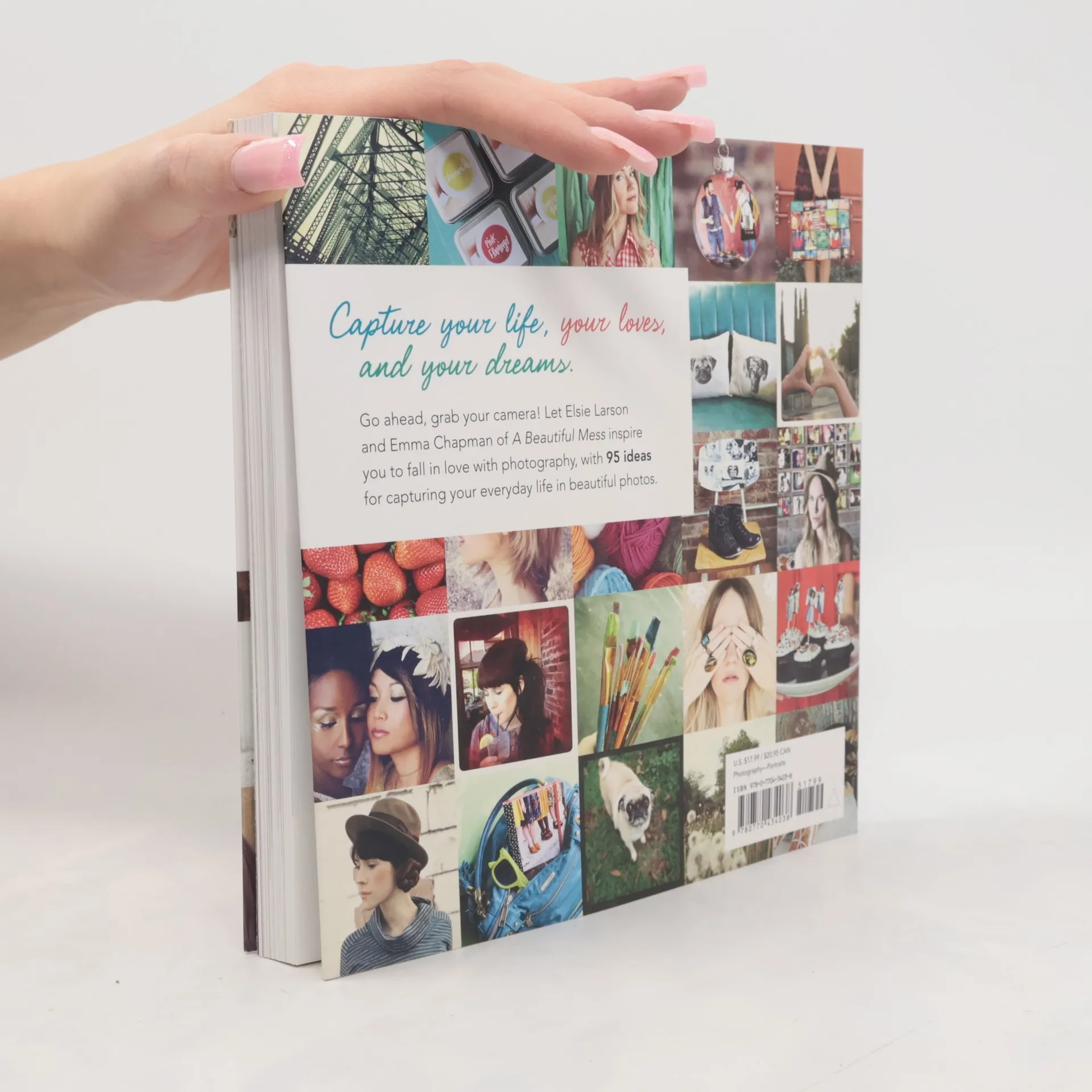 Capture your life, your loves, and your dreams. Go ahead, grab your camera! Let Elsie Larson and Emma Chapman of A Beautiful Mess inspire you to fall in love with photography, with 95 ideas for capturing your everyday life in beautiful photos. Book jacket.