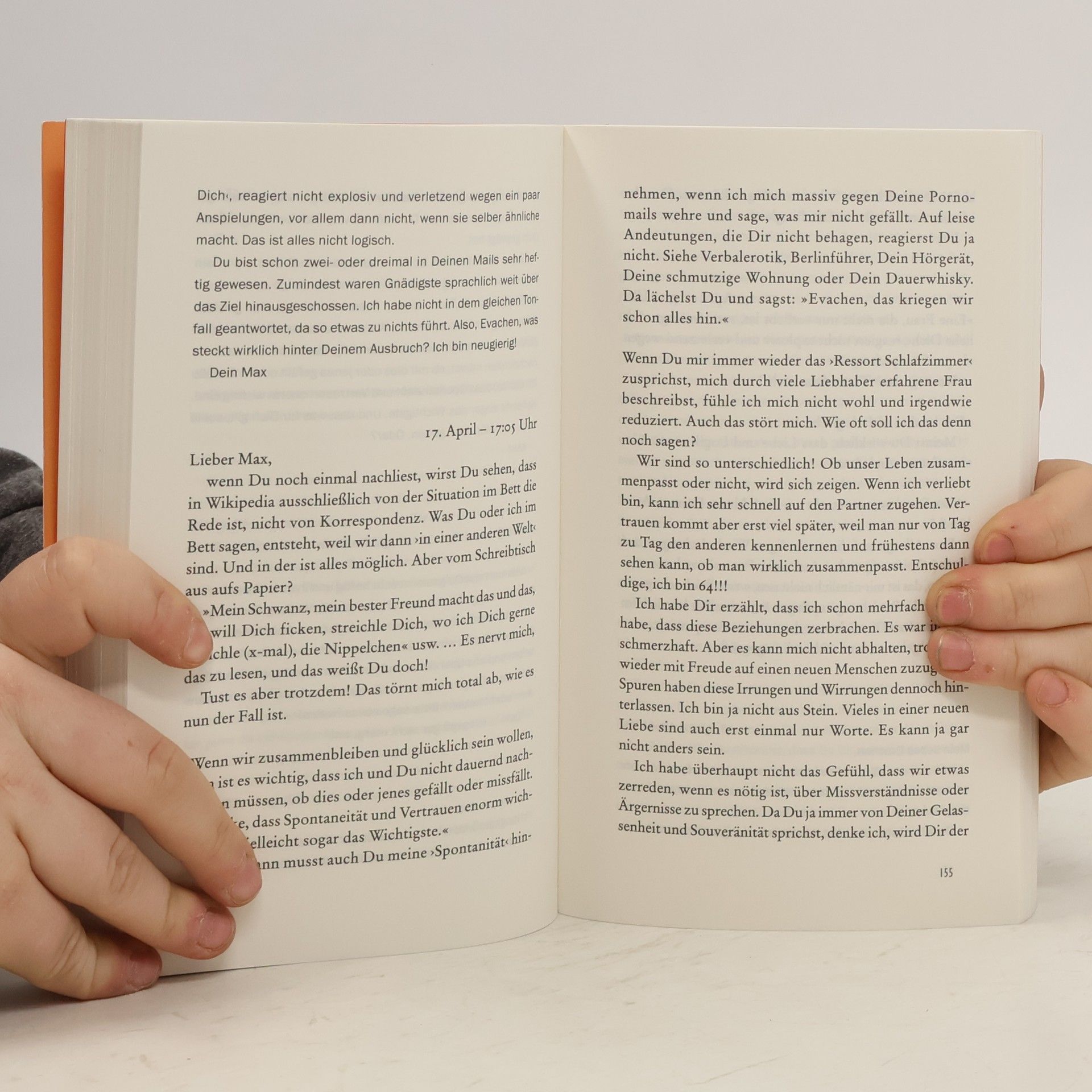Pianistin Eva-Maria, Anfang 60, ist neu in Berlin. Sie gibt eine Kontaktanzeige auf, um doch noch die Liebe ihres Lebens zu finden. Ihre Wahl fällt auf Maximilian, dessen ironischer Schreibstil sie sofort in den Bann zieht, obwohl beide nicht unterschiedlicher sein könnten: Sie Künstlerin und geprägt durch die wilden 60er-Jahre. Er ein Adliger alter Schule, fantasievoll gescheitert auf allen Ebenen. Vielleicht könnte es dennoch die perfekte Beziehung werden? Aber dann entbrennt per E-Mail ein Geschlechterrollenkampf, von dem Eva-Maria dachte, dass sie ihn schon längst siegreich hinter sich gelassen hätte …