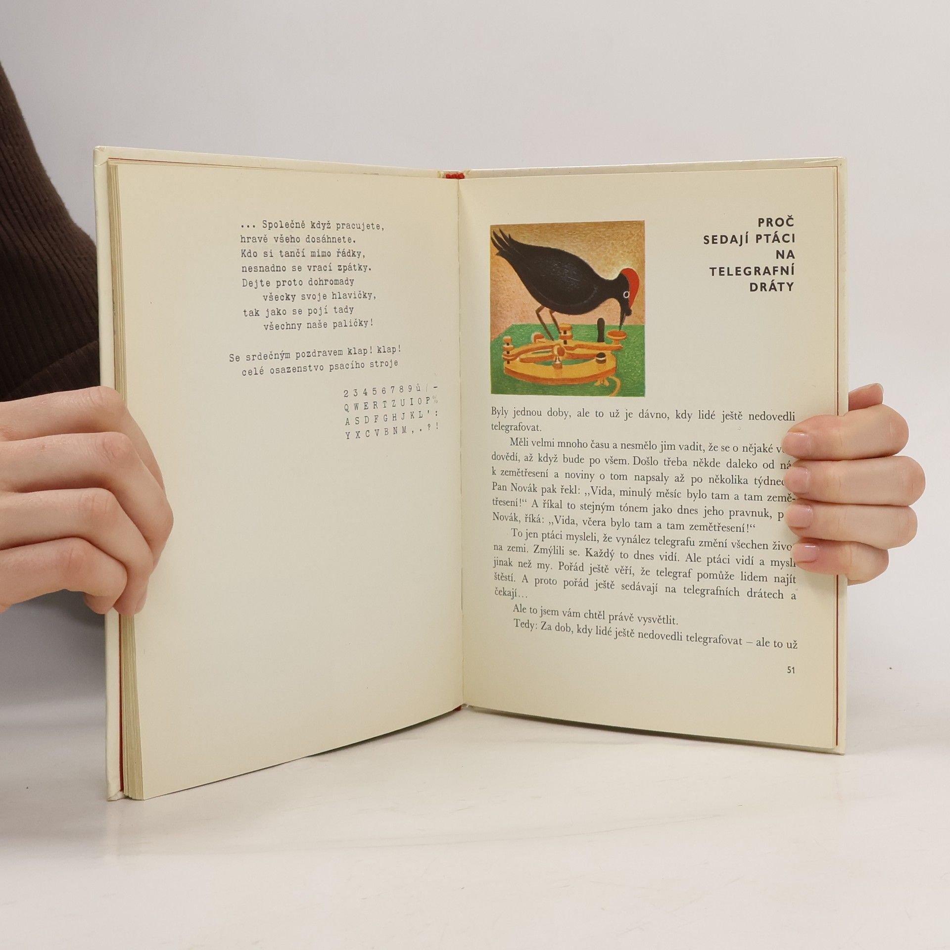 a jiné pohádky. Soubor vtipně pojatých pohádek z moderního světa zahrnuje příběhy věcí (Pusťte basu do rozhlasu, Vzpoura v psacím stroji), ptáků (Proč sedají ptáci na telegrafní dráty) a dětí (Jak vynalezli padák, O míči, který šel jen do nepřátelské branky).