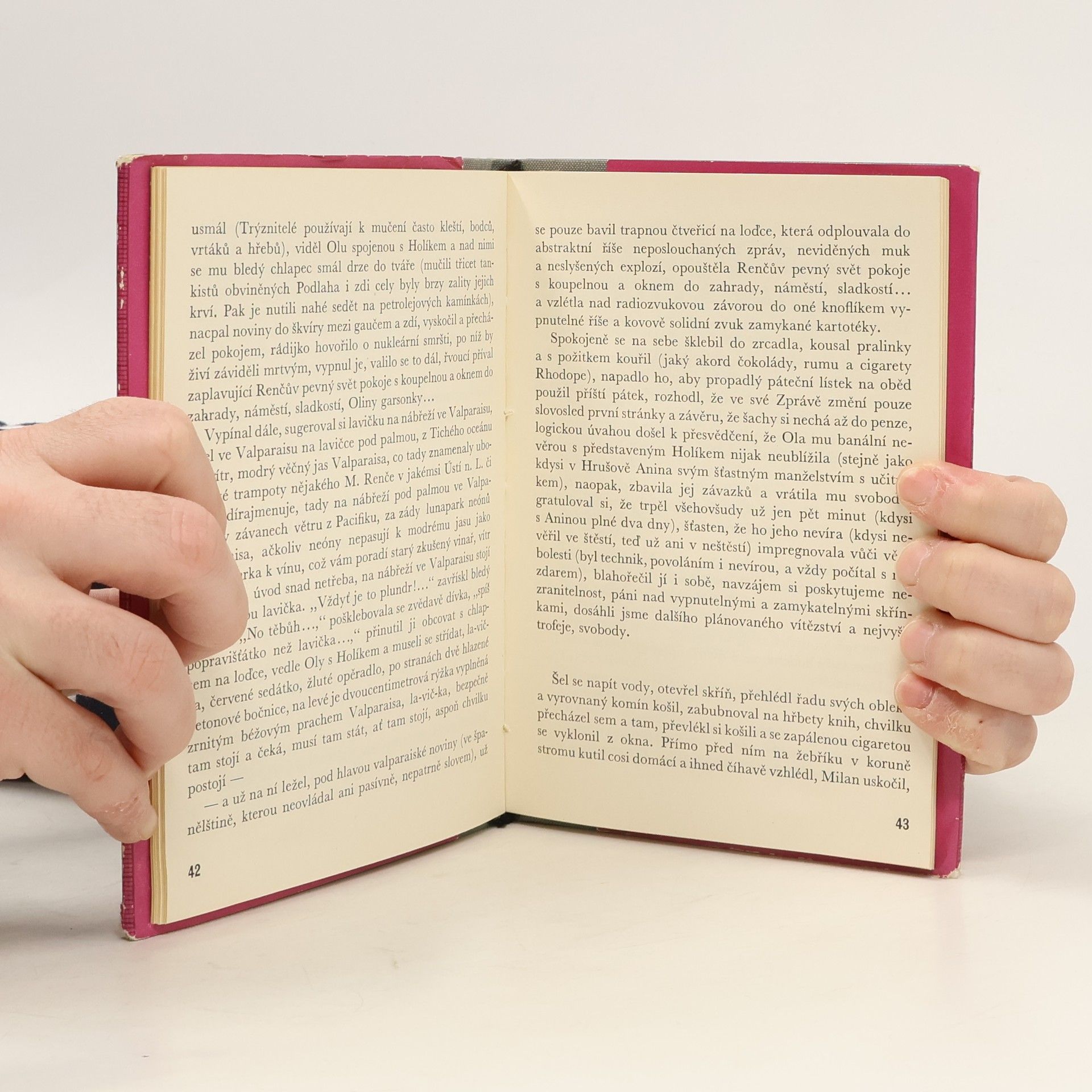 Hlavní postavou je vedoucí chemické laboratoře - Milan Renč: mladý, inteligentní člověk, deptaný mechanickou prací v laboratoři. Stejnou skepsí je poznamenán jeho soukromý život - nevěří v lásku, v erotickém dobrodružství hledá jen kompenzaci bezduchosti svého počínání. Objevuje sezde kritika negativních životních jevů: životního stereotypu, konzumentství, promarněného života, sobectví a prospěchářství. Novela je první částí "černé pentalogie", nazvané 5 způsobů ukájení.