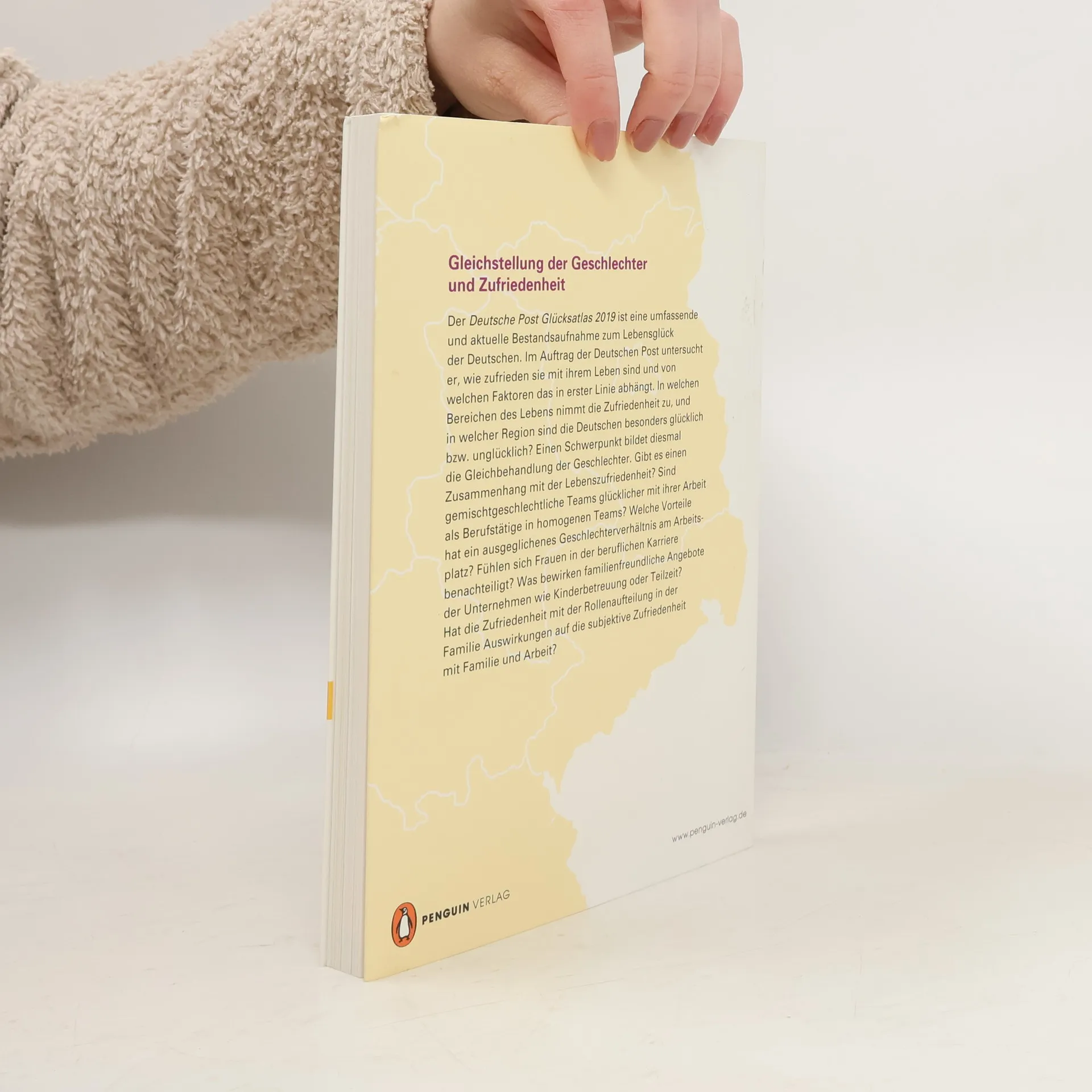 Glück kann man messen. Der „Glücksatlas 2019“ ist die aktuellste Bestandsaufnahme zum Lebensglück der Deutschen. Er zeigt, wie sich die Lebenszufriedenheit in Ost- und Westdeutschland entwickelt hat und in welcher Region die Deutschen am glücklichsten bzw. unglücklichsten sind. In einem Schwerpunkt geht der Glückatlas der Frage nach, welche Unterschiede in der Zufriedenheit es zwischen Männern und Frauen gibt.