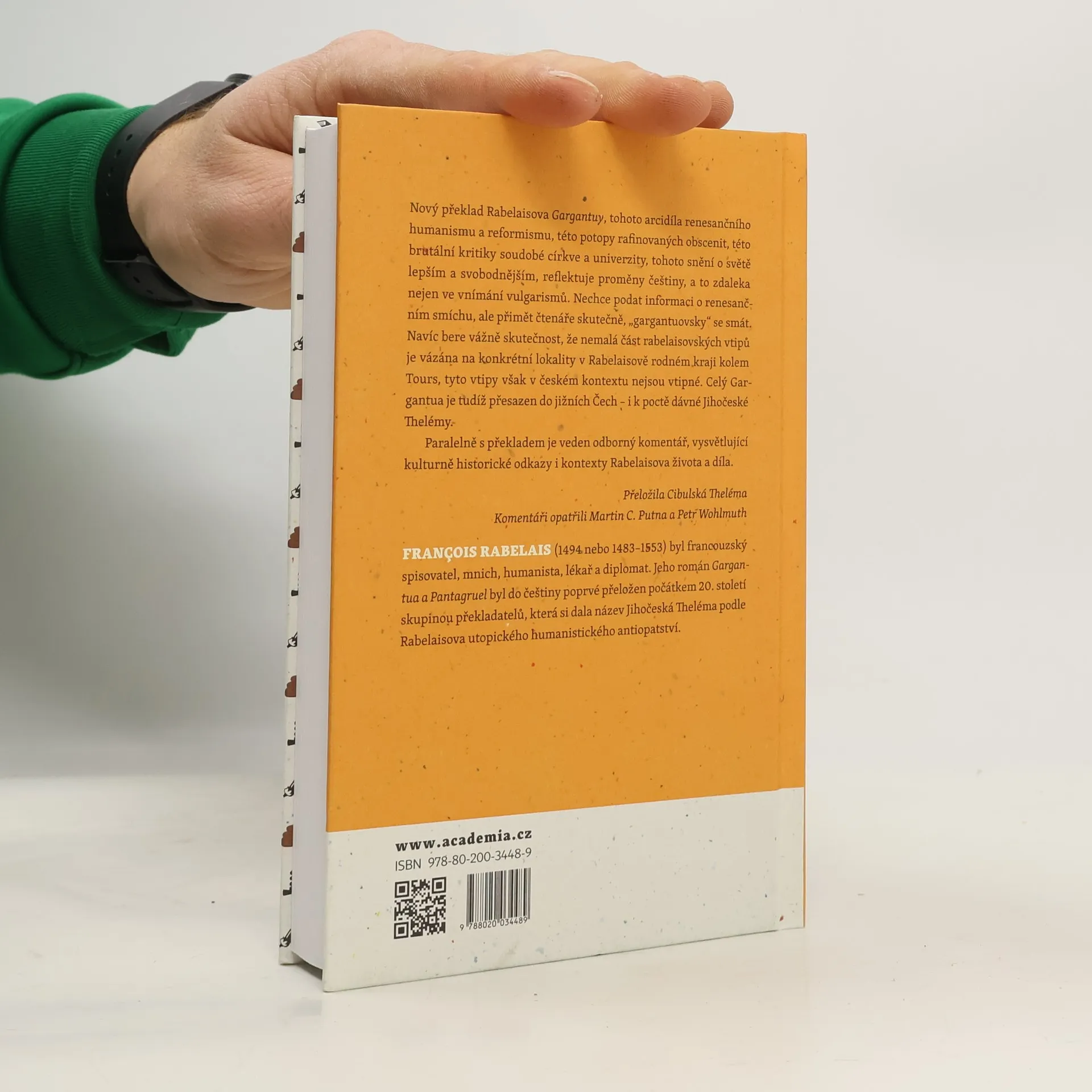 Nový překlad Rabelaisova Gargantuy, tohoto arcidíla renesančního humanismu a reformismu, této potopy rafinovaných obscenit, této brutální kritiky soudobé církve a univerzity, tohoto snění o světě lepším a svobodnějším, reflektuje proměny češtiny, a to zdaleka nejen ve vnímání vulgarismů. Nechce podat informaci o renesančním smíchu, ale přimět čtenáře skutečně, „gargantuovsky“ se smát. Navíc bere vážně skutečnost, že nemalá část rabelaisovských vtipů je vázána na konkrétní lokality v Rabelaisově rodném kraji kolem Tours, tyto vtipy však v českém kontextu nejsou vtipné. Celý Gargantua je tudíž přesazen do jižních Čech – i k poctě dávné Jihočeské Thelémy. Paralelně s překladem je veden odborný komentář, vysvětlující kulturně historické odkazy i kontexty Rabelaisova života a díla.