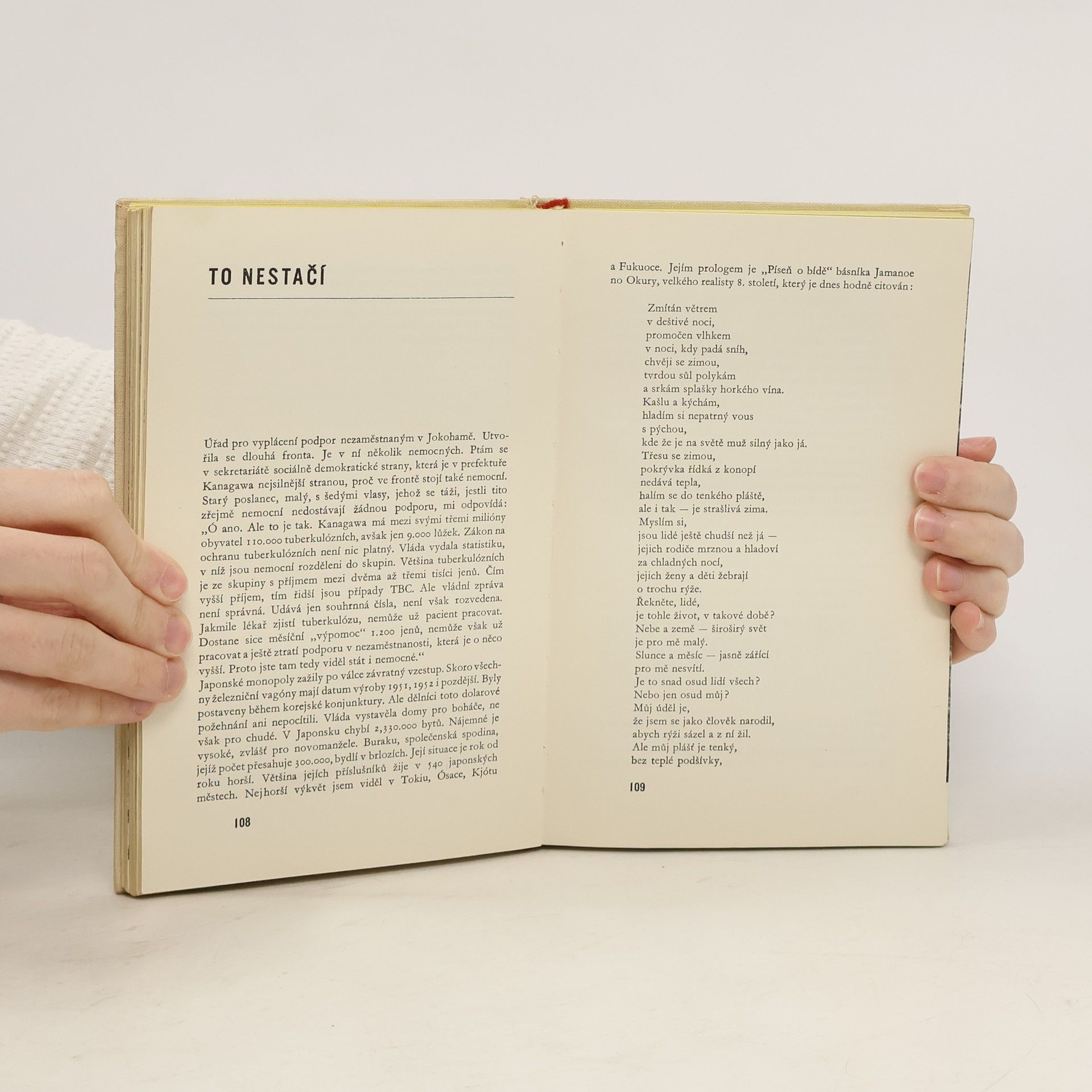 Kniha je nejen cestopisnou reportáží o zemi staletých osobitých tradic prostoupené všemi rozpory moderní společnosti, o zemi, jež poznala atomovou bombu, o zemi podivuhodných krás a vyspělé kultury. Je i o politickém životě v Japonsku, boji stran, stávkách dělníků a mírovém hnutí, emancipaci žen, o boji japonských zemědělců proti zabrání půdy pro americké vojenské základny. Autor během svého pobytu navštívil nejen Tokio a jiná velká města, ale dostal se i do nejodlehlejších míst japonského venkova. Chtěl objevit skutečnou tvář japonského života, často tak odlišnou od našich představ.