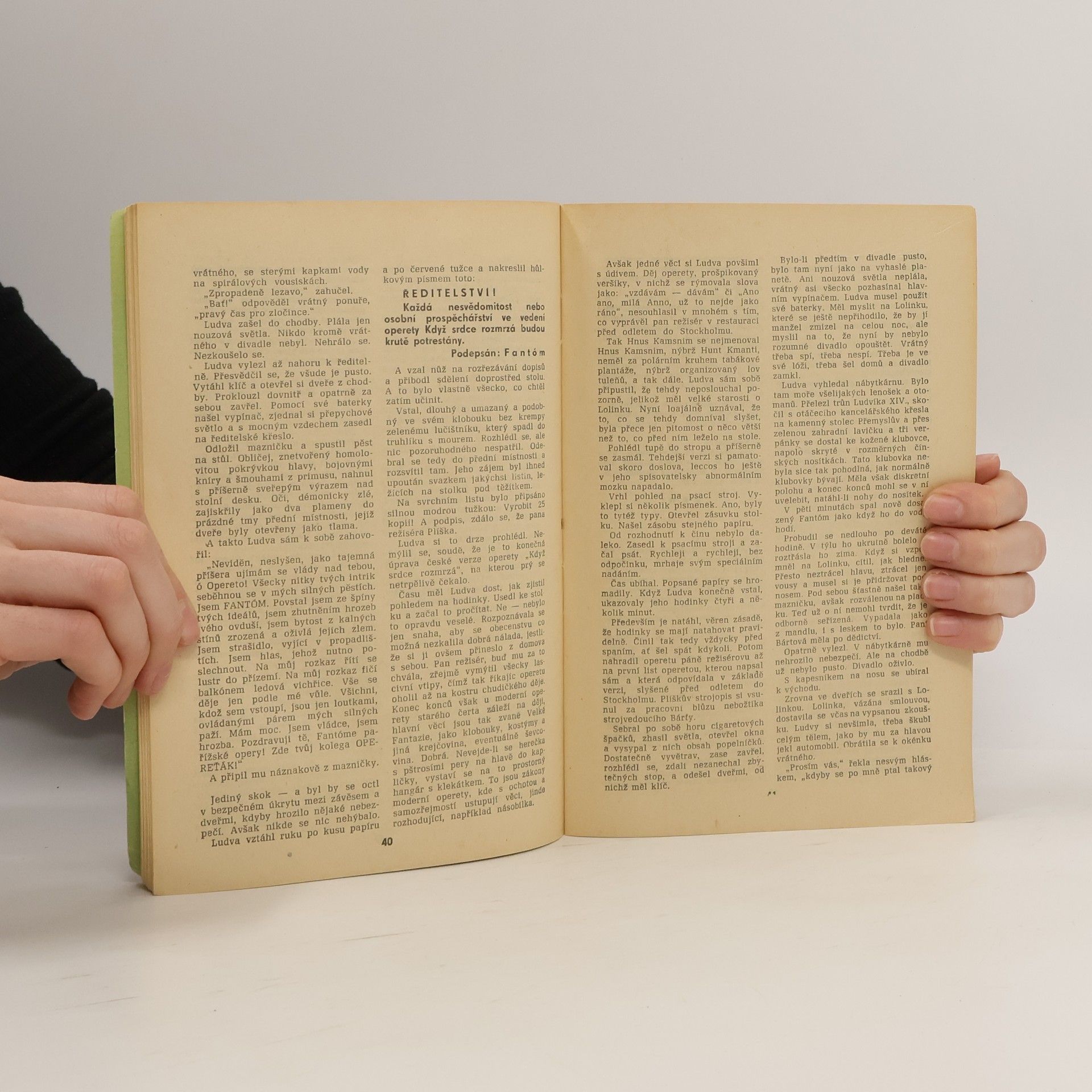 Humoristický román parodizující klasickou Lerouxovu detektivku Fantóm opery.