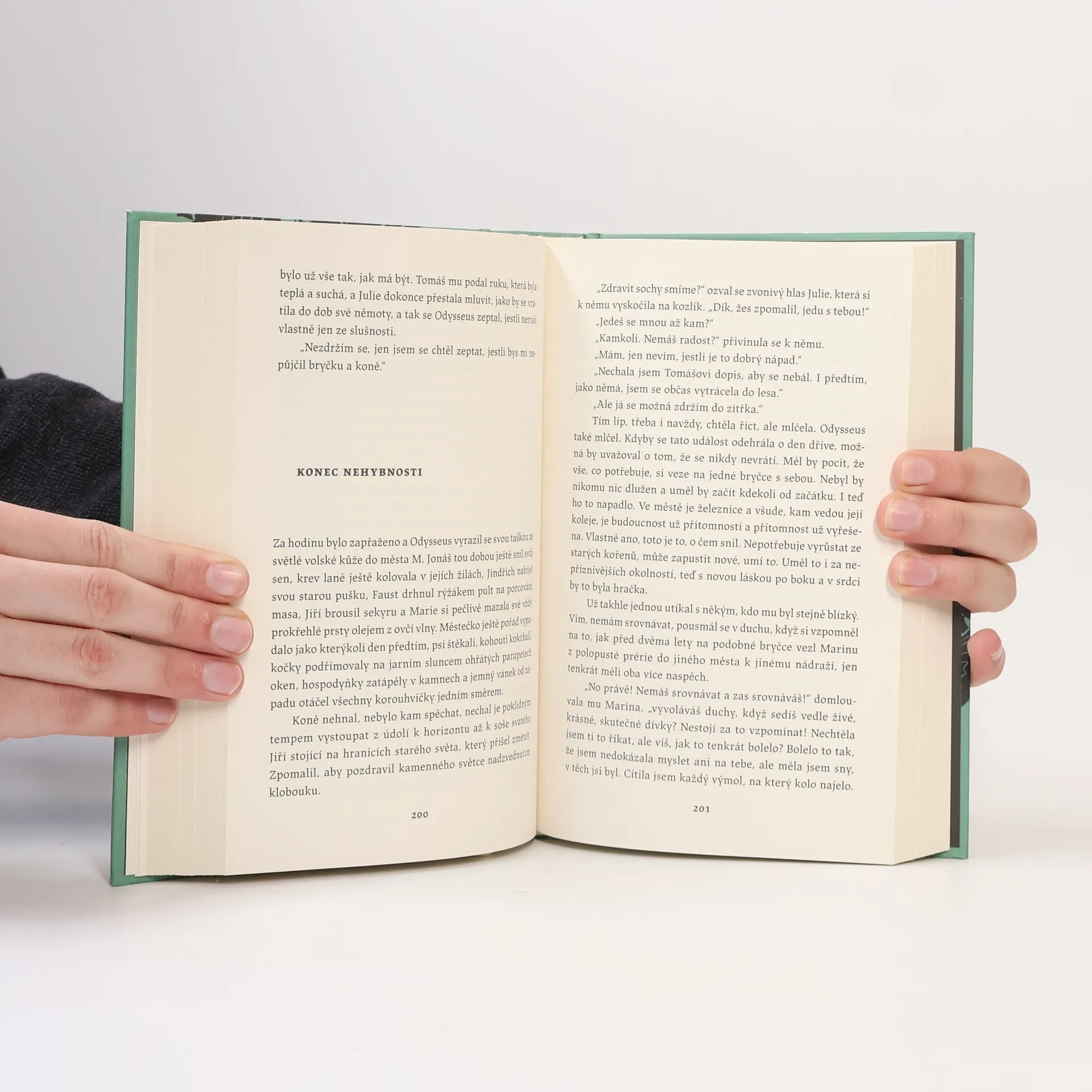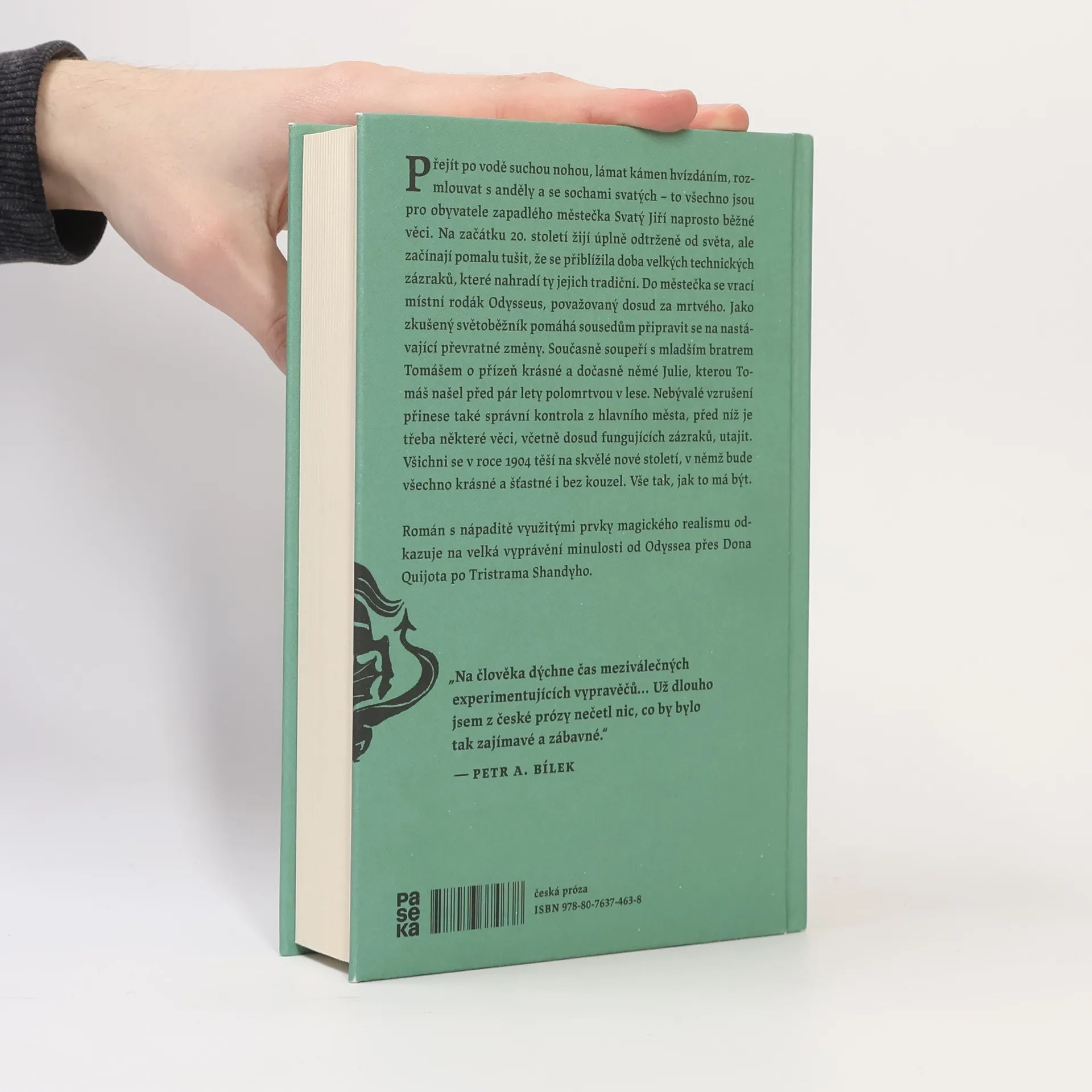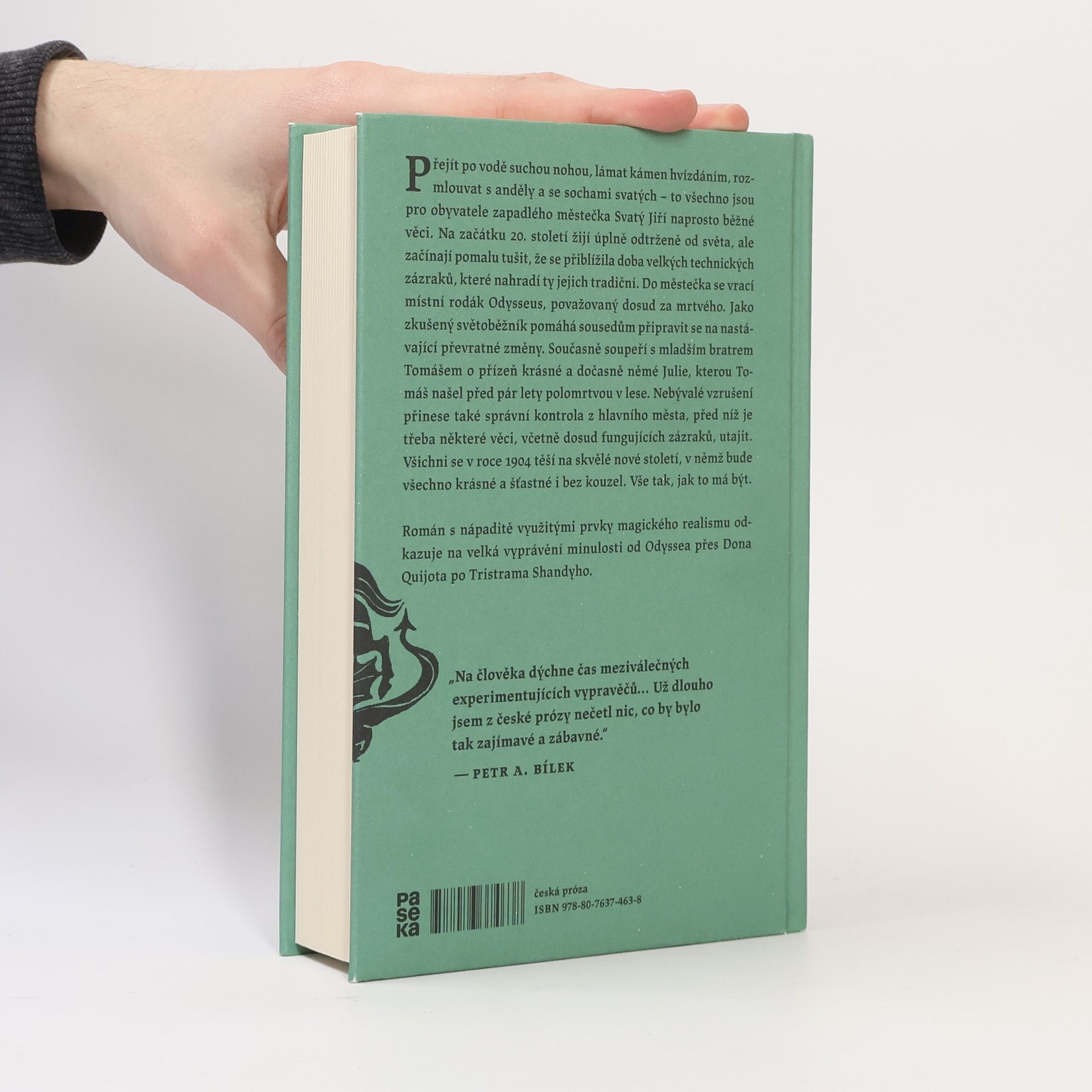 Přejít po vodě suchou nohou, lámat kámen hvízdáním, rozmlouvat s anděly a se sochami svatých – to všechno jsou pro obyvatele zapadlého městečka Svatý Jiří naprosto běžné věci. Na začátku 20. století žijí úplně odtrženě od světa, ale začínají pomalu tušit, že se přiblížila doba velkých technických zázraků, které nahradí ty jejich tradiční. Do městečka se vrací místní rodák Odysseus, považovaný dosud za mrtvého. Jako zkušený světoběžník pomáhá sousedům připravit se na nastávající převratné změny. Současně soupeří s mladším bratrem Tomášem o přízeň krásné a dočasně němé Julie, kterou Tomáš našel před pár lety polomrtvou v lese. Nebývalé vzrušení přinese také správní kontrola z hlavního města, před níž je třeba některé věci, včetně dosud fungujících zázraků, utajit. Všichni se v roce 1904 těší na skvělé nové století, v němž bude všechno krásné a šťastné i bez kouzel. Vše tak, jak to má být. Román s nápaditě využitými prvky magického realismu odkazuje na velká vyprávění minulosti od Odyssea přes Dona Quijota po Tristrama Shandyho.
