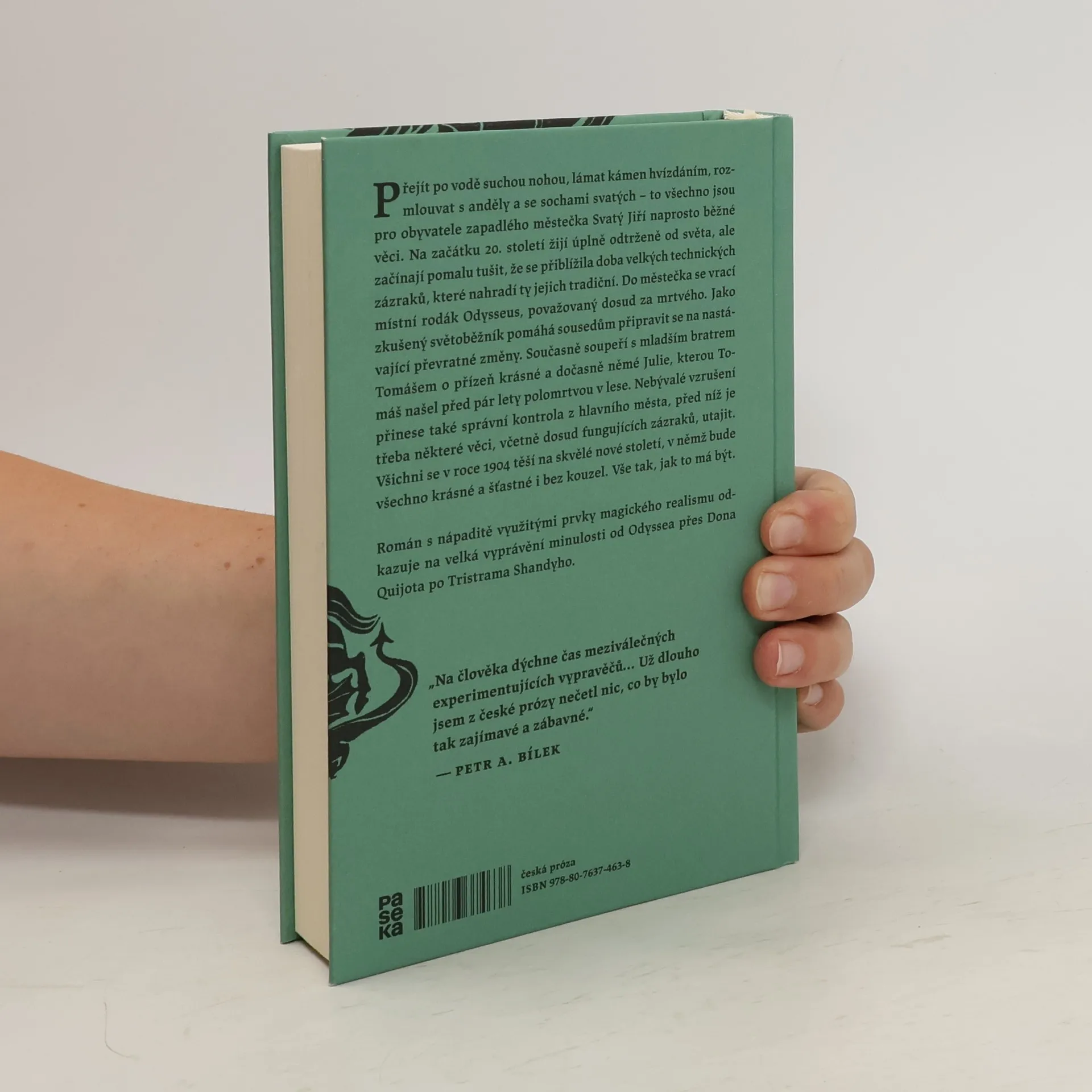 Přejít po vodě suchou nohou, lámat kámen hvízdáním, rozmlouvat s anděly a se sochami svatých – to všechno jsou pro obyvatele zapadlého městečka Svatý Jiří naprosto běžné věci. Na začátku 20. století žijí úplně odtrženě od světa, ale začínají pomalu tušit, že se přiblížila doba velkých technických zázraků, které nahradí ty jejich tradiční. Do městečka se vrací místní rodák Odysseus, považovaný dosud za mrtvého. Jako zkušený světoběžník pomáhá sousedům připravit se na nastávající převratné změny. Současně soupeří s mladším bratrem Tomášem o přízeň krásné a dočasně němé Julie, kterou Tomáš našel před pár lety polomrtvou v lese. Nebývalé vzrušení přinese také správní kontrola z hlavního města, před níž je třeba některé věci, včetně dosud fungujících zázraků, utajit. Všichni se v roce 1904 těší na skvělé nové století, v němž bude všechno krásné a šťastné i bez kouzel. Vše tak, jak to má být. Román s nápaditě využitými prvky magického realismu odkazuje na velká vyprávění minulosti od Odyssea přes Dona Quijota po Tristrama Shandyho.