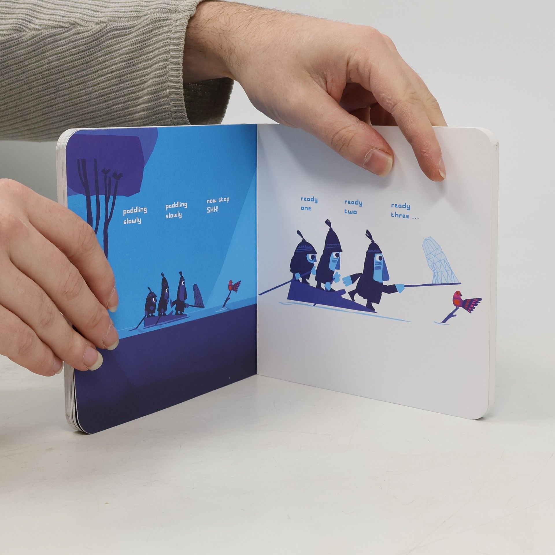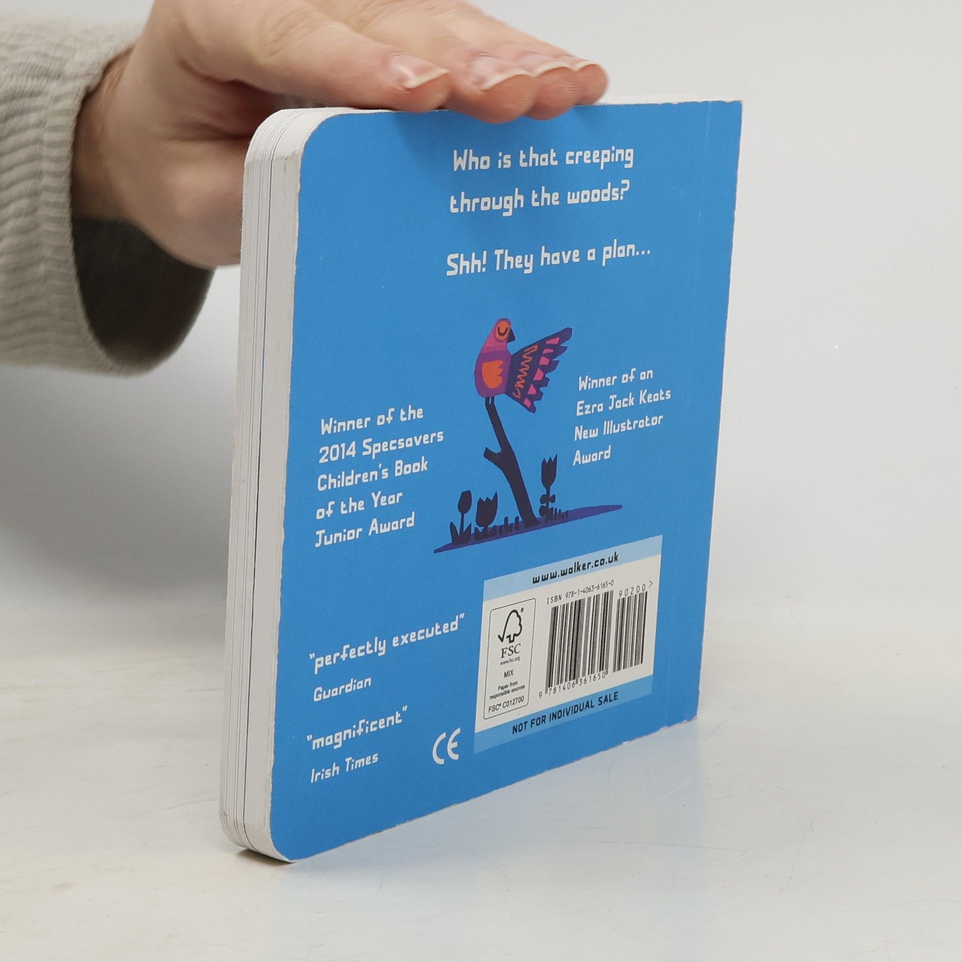 Four friends, three big and one little, are out for a walk. Suddenly, they spot it - a beautiful bird perched high in a tree! They simply must have it and - shh! - they have a plan