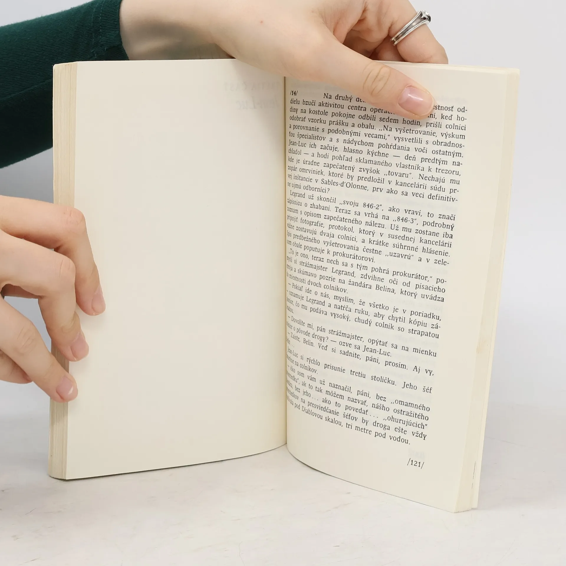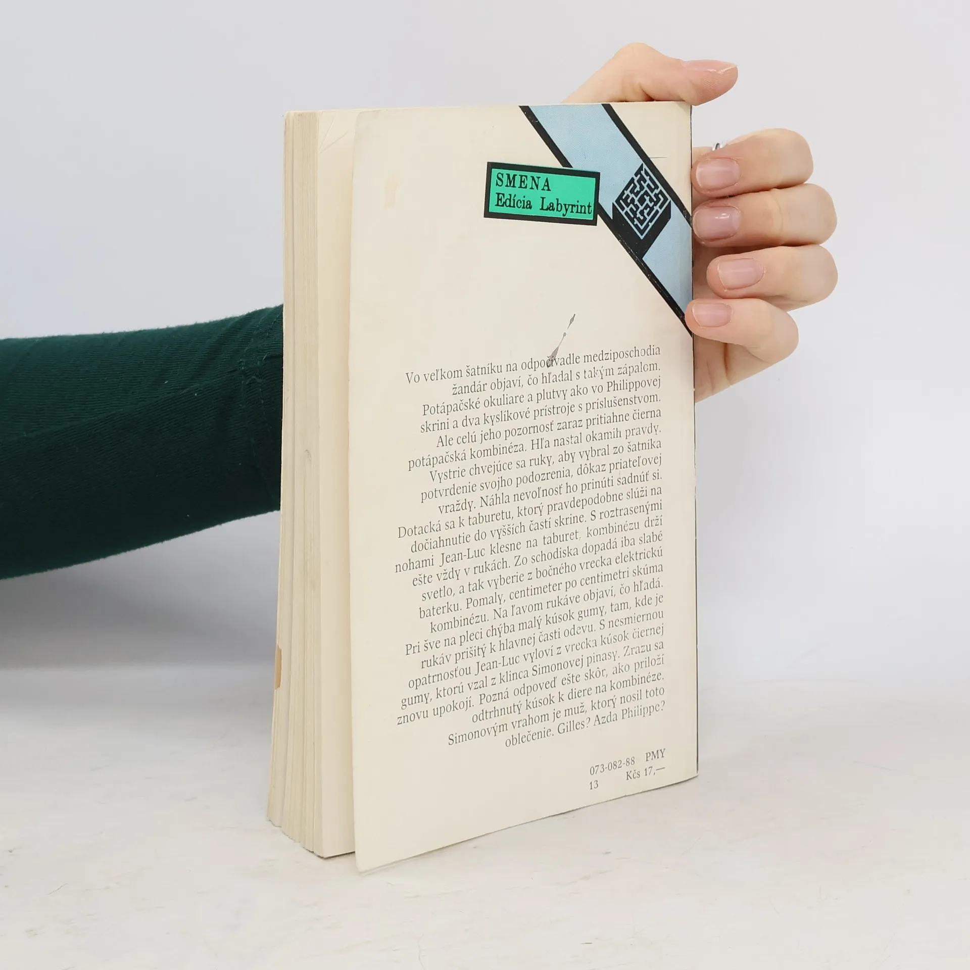 Vo veľkom šatníku na odpočívadle medziposchodia žandár objaví, čo hľadal s takým zápalom. Potápačské okuliare a plutvy ako vo Philippovej skrini a dva kyslíkové prístroje s príslušenstvom. Ale celú jeho pozornosť zaraz pritiahne čierna potápačská kombinéza. Hľa, nastal okamih pravdy. Vystrie chvejúce sa ruky, aby vybral zo šatníka potvrdenie svojho podozrenia, dôkaz priateľovej vraždy. Náhla nevoľnosť ho prinúti sadnúť si. Dotacká sa k taburetu, ktorý pravdepodobne slúži na dočiahnutie do vyšších častí skrine. S roztrasenými nohami Jean-Luc klesne na taburet, kombinézu drží ešte vždy v rukách. Zo schodiska dopadá iba slabé svetlo, a tak vyberie z bočného vrecka elektrickú baterku. Pomaly, centimeter po centimetri skúma kombinézu. Na ľavom rukáve objaví, čo hľadá. Pri šve na pleci chýba malý kúsok gumy, tam, kde je rukáv prišitý k hlavnej časti odevu. S nesmiernou opatrnosťou Jean-Luc vyloví z vrecka kúsok čiernej gumy, ktorú vzal z klinca Šimonovej pinasy. Zrazu sa znovu upokojí. Pozná odpoveď ešte skôr, ako priloží odtrhnutý kúsok k diere na kombinéze. Šimonovým vrahom je muž, ktorý nosil toto oblečenie. Gilles? Azda Philippe?