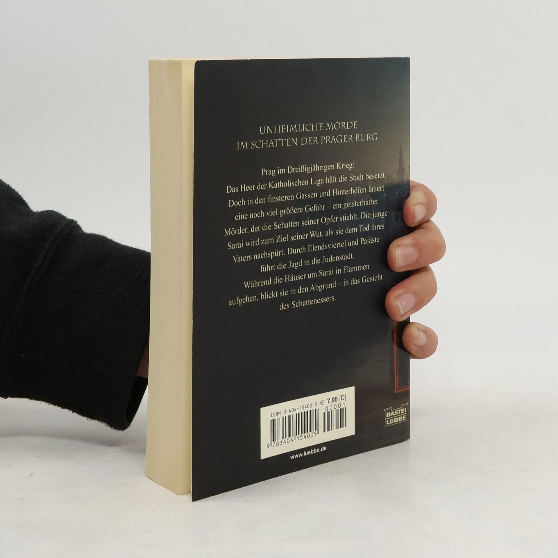 Prag im Dreißigjährigen Krieg: Das Heer der Katholischen Liga hält die Stadt besetzt. Doch in den finsteren Gassen und Hinterhöfen lauert eine noch viel größere Gefahr - ein geisterhafter Mörder, der den Menschen ihre Schatten stiehlt. Die junge Sarai wird zum Ziel seiner Wut, als sie dem Tod ihres Vaters nachspürt. Über die Brücken und durch die Paläste führt die Jagd in die Judenstadt. Während die Häuser um Sarai in Flammen aufgehen, blickt sie in den Abgrund - in das Gesicht des Schattenessers.