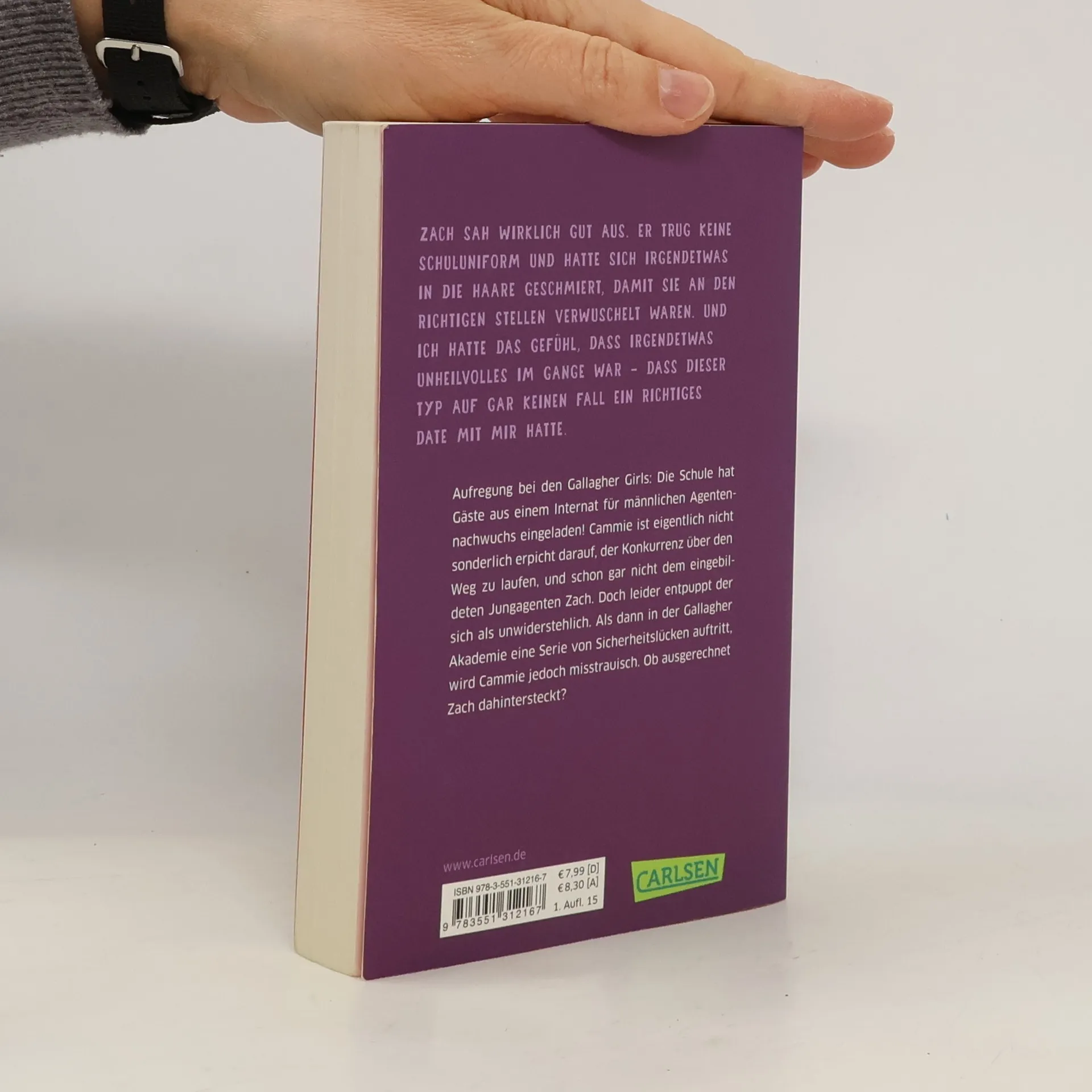 Aufregung bei den Gallagher Girls: Die Schule hat Gäste aus einem Internat für männlichen Agentennachwuchs eingeladen! Cammie ist eigentlich nicht sonderlich erpicht darauf, der Konkurrenz über den Weg zu laufen, und schon gar nicht dem eingebildeten Jungagenten Zach. Doch leider entpuppt der sich als unwiderstehlich. Als dann in der Gallagher Akademie eine Serie von Sicherheitslücken auftritt, wird Cammie jedoch misstrauisch. Ob ausgerechnet Zach dahintersteckt? Der 2. Band der romantischen Agentenserie.