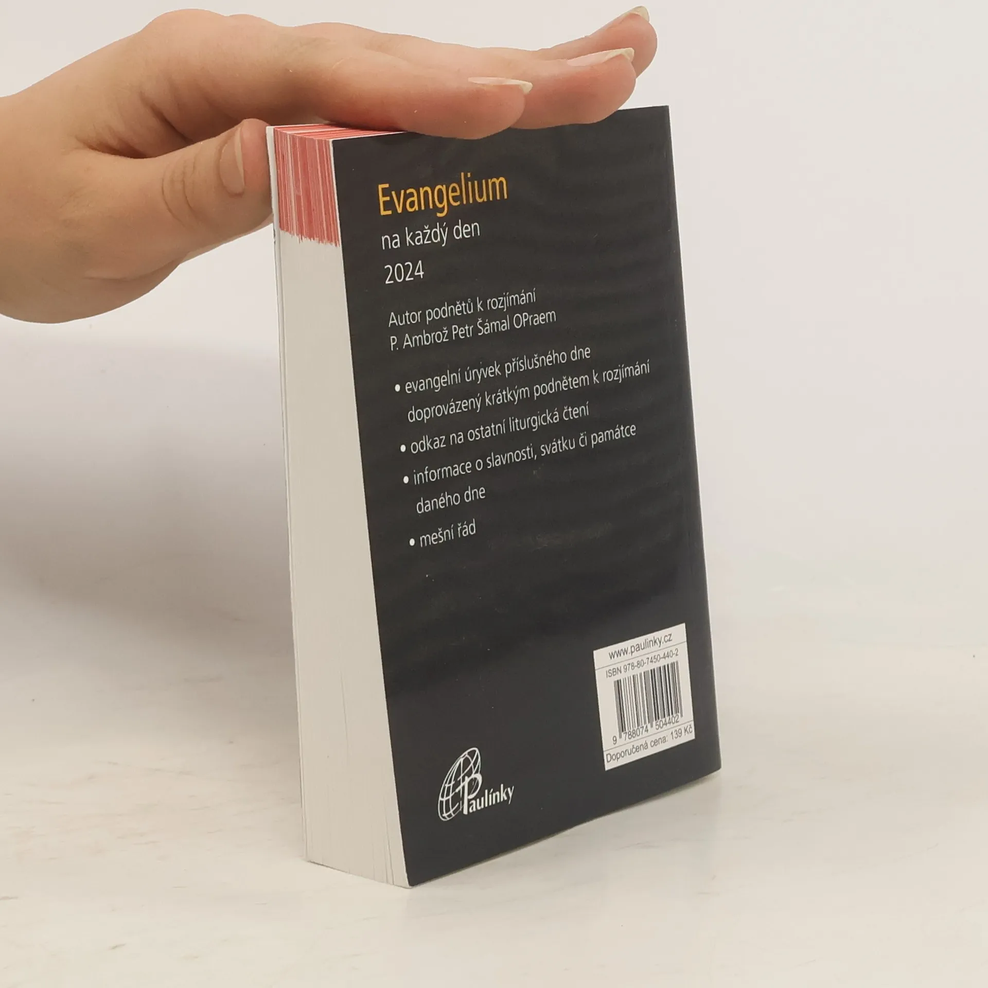 Knížka kapesního formátu je každodenním průvodcem pro ty, kdo touží číst a rozjímat evangelium v rytmu liturgie církve. Evangelní úryvek příslušného dne je doprovázen krátkým komentářem. Podněty k rozjímání na rok 2024 připravil P. Ambrož Petr Šámal OPraem. Evangelium dne je uvedeno v plném znění. Nechybí však odkaz na ostatní liturgická čtení a informace o slavnosti, svátku či památce daného dne.