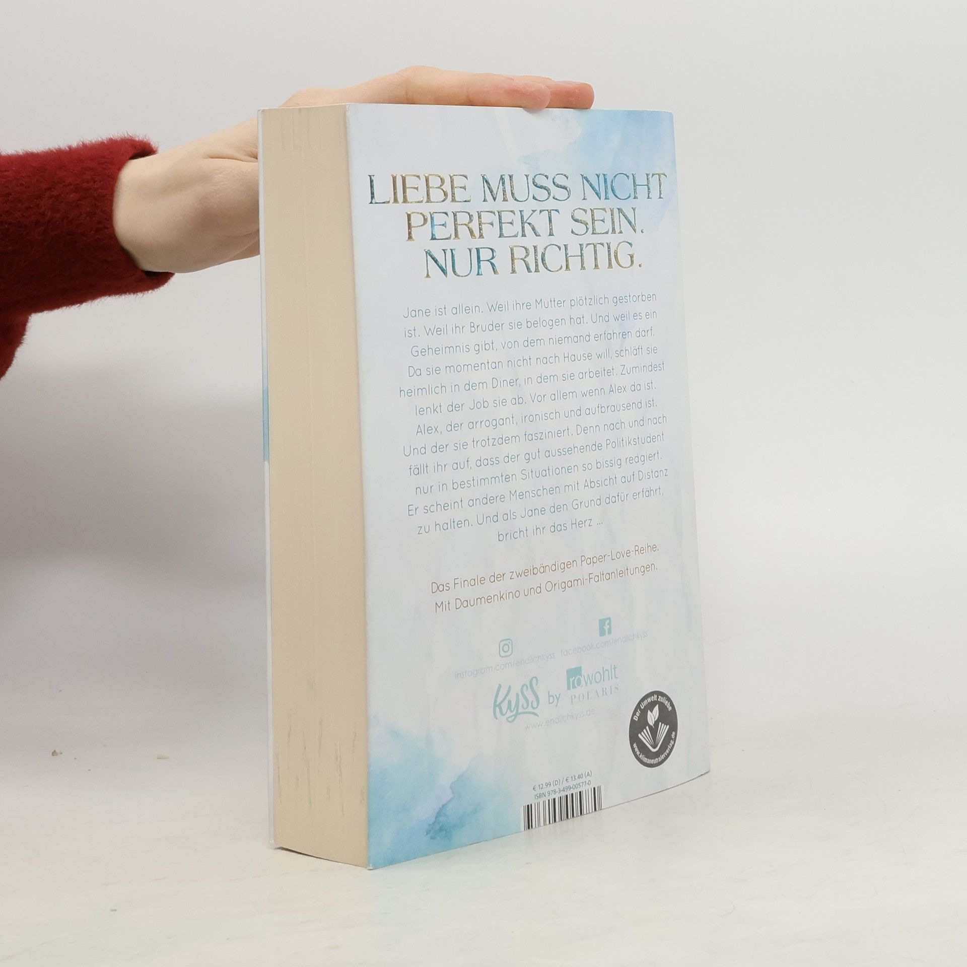 Liebe muss nicht perfekt sein. Nur richtig. Jane ist allein. Weil ihre Mutter plötzlich gestorben ist. Weil ihr Bruder sie belogen hat. Und weil es ein Geheimnis gibt, von dem niemand erfahren darf. Da sie momentan nicht nach Hause will, schläft sie heimlich in dem Diner, in dem sie arbeitet. Zumindest lenkt der Job sie ab. Vor allem wenn Alex da ist. Alex, der arrogant, ironisch und aufbrausend ist. Und der sie trotzdem fasziniert. Denn nach und nach fällt ihr auf, dass der gutaussehende Politikstudent nur in bestimmten Situationen so bissig reagiert. Er scheint andere Menschen mit Absicht auf Distanz zu halten. Und als Jane den Grund dafür erfährt, bricht ihr das Herz … Das Finale der zweibändigen Paper-Love-Reihe Mit Daumenkino und Origami-Faltanleitungen
