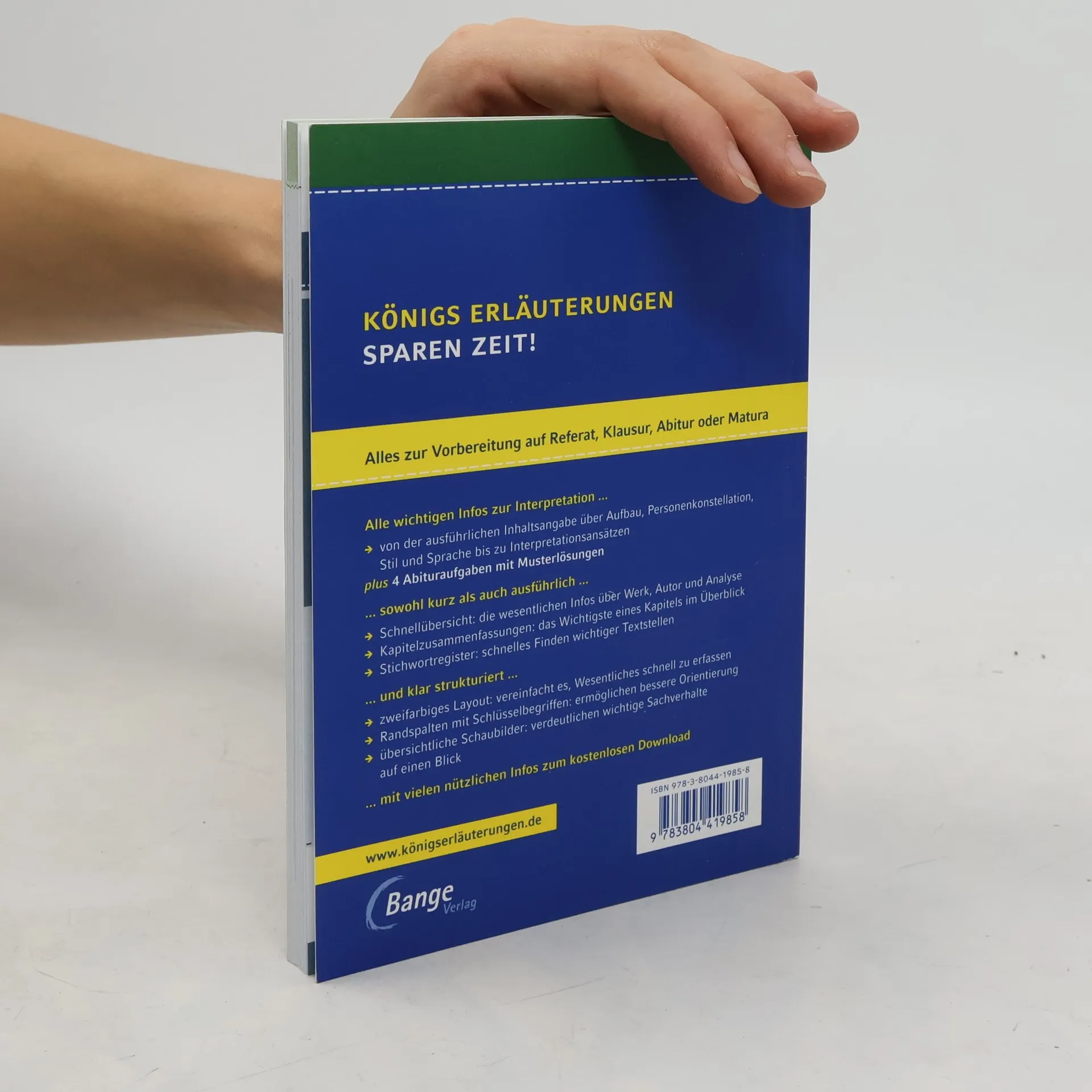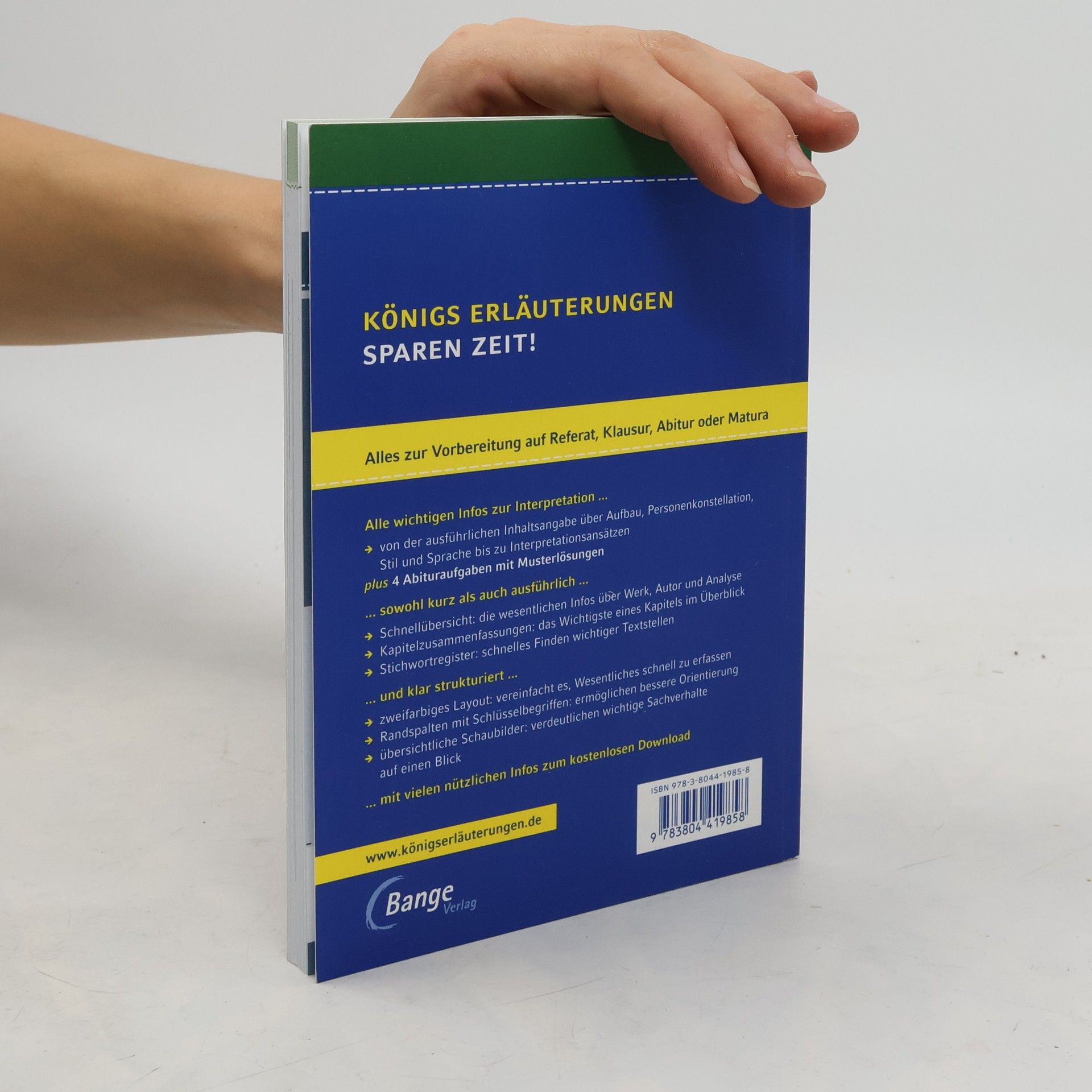 Königs Erläuterungen – Textanalyse und Interpretation mit ausführlicher Inhaltsangabe und Abituraufgaben In einem Band bieten dir die neuen Königs Erläuterungen alles, was du zur Vorbereitung auf Referat, Klausur, Abitur oder Matura benötigst. Das spart Zeit bei der Vorbereitung! Alle wichtigen Infos zur Interpretation... - von der ausführlichen Inhaltsangabe über Aufbau, Personenkonstellation, Stil und Sprache bis zu Interpretationsansätzen - plus 4 Abituraufgaben mit Musterlösungen und 2 weitere zum kostenlosen Download ... sowohl kurz als auch ausführlich ... - Die Schnellübersicht fasst alle wesentlichen Infos zu Werk und Autor und Analyse zusammen. - Die Kapitelzusammenfassungen zeigen dir das Wichtigste eines Kapitels im Überblick – ideal auch zum Wiederholen. - Das Stichwortregister ermöglicht dir schnelles Finden wichtiger Textstellen. ... und klar strukturiert ... - Ein zweifarbiges Layout hilft dir Wesentliches einfacher und schneller zu erfassen. - Die Randspalte mit Schlüsselbegriffen ermöglichen dir eine bessere Orientierung. - Klar strukturierte Schaubilder verdeutlichen dir wichtige Sachverhalte auf einen Blick. ... mit vielen zusätzlichen Infos zum kostenlosen Download.
