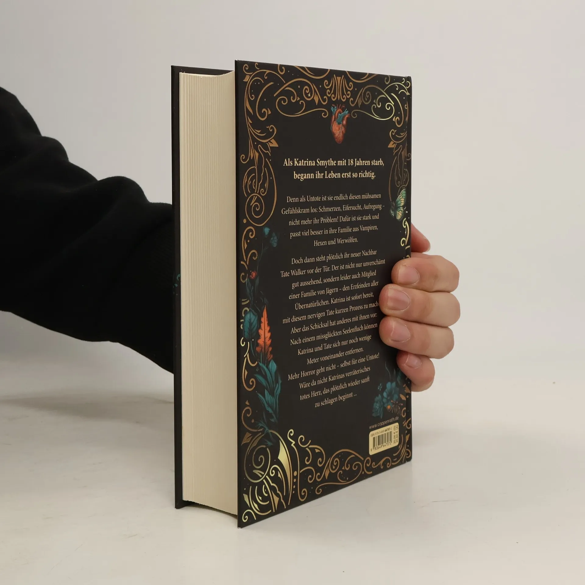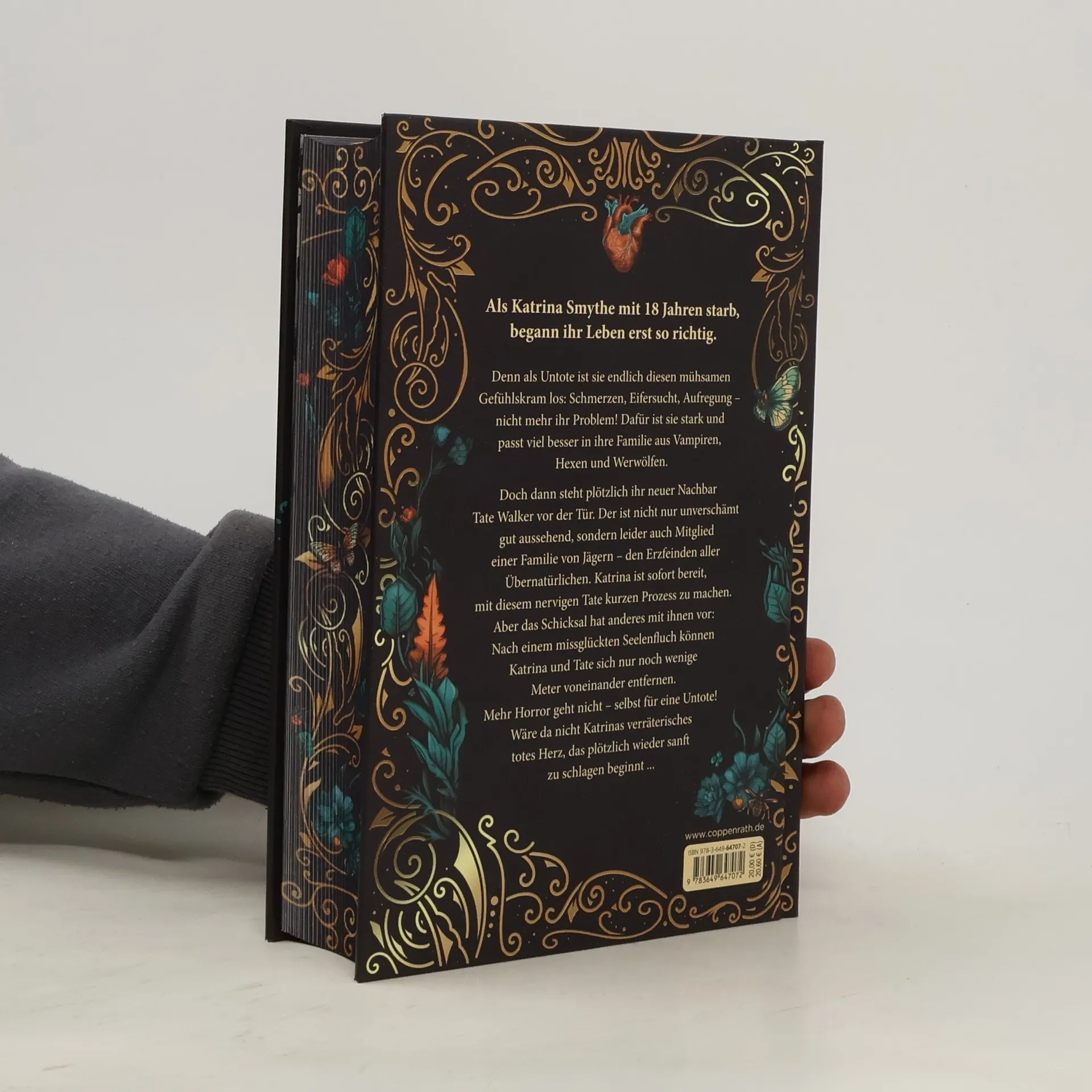 Hochwertige Ausgabe: Farbschnitt in der 1. Auflage, Goldfolie auf dem Cover und illustriertes Vor- und Nachsatzpapier Fühlst du meinen Herzschlag? Spürst du das Kribbeln auf der Haut? Das darf nicht echt sein! Katrina Smythe ist 18 Jahre alt, Highschool-Schülerin und seit einem Jahr untot. Ein Glücksfall, ist sie so doch endlich diesen mühsamen Gefühlskram los: Schmerzen, Eifersucht, Aufregung – nicht mehr ihr Problem! Dafür ist sie stark und passt viel besser in ihre außergewöhnliche Familie aus Vampiren, Hexen und Werwölfen. Doch alles ändert sich, als der neue Nachbarsjunge Tate Walker bei ihnen klingelt. Der ist nicht nur unverschämt gut aussehend, sondern leider auch Mitglied einer Familie von Jägern – den Erzfeinden aller Übernatürlichen. Katrina ist sofort bereit, mit diesem nervigen Tate kurzen Prozess zu machen. Aber dann geschieht das Unglaubliche: Die Walkers greifen nicht an, sondern bitten die Smythes um Hilfe. Und Katrina und Tate kommen sich näher als beiden lieb ist. Denn nach einem missglückten Seelenfluch können sie sich nur noch wenige Meter voneinander entfernen. Mehr Horror geht nicht – selbst für eine Untote! Wäre da nicht Katrinas verräterisches totes Herz, das plötzlich wieder sanft zu schlagen beginnt ... Band 1 des mitreißenden Enemies-to-lovers-Zweiteilers: verführerisch, witzig, herzergreifend Enemies to lovers, Haters to lovers, Forced Proximity, Paranormal Romance, Forbidden Love, Slow Burn