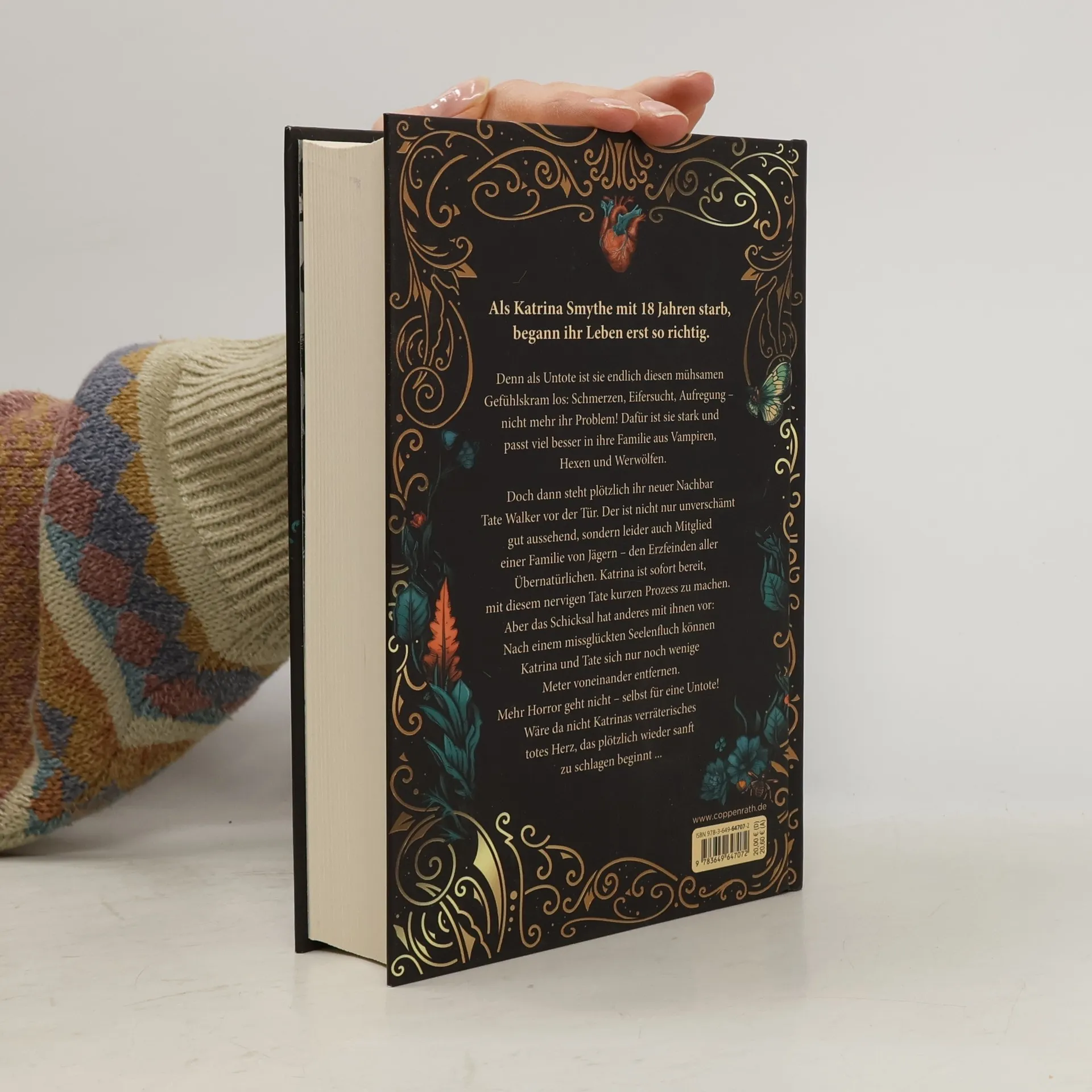 Hochwertige Ausgabe: Farbschnitt in der 1. Auflage, Goldfolie auf dem Cover und illustriertes Vor- und Nachsatzpapier Fühlst du meinen Herzschlag? Spürst du das Kribbeln auf der Haut? Das darf nicht echt sein! Katrina Smythe ist 18 Jahre alt, Highschool-Schülerin und seit einem Jahr untot. Ein Glücksfall, ist sie so doch endlich diesen mühsamen Gefühlskram los: Schmerzen, Eifersucht, Aufregung – nicht mehr ihr Problem! Dafür ist sie stark und passt viel besser in ihre außergewöhnliche Familie aus Vampiren, Hexen und Werwölfen. Doch alles ändert sich, als der neue Nachbarsjunge Tate Walker bei ihnen klingelt. Der ist nicht nur unverschämt gut aussehend, sondern leider auch Mitglied einer Familie von Jägern – den Erzfeinden aller Übernatürlichen. Katrina ist sofort bereit, mit diesem nervigen Tate kurzen Prozess zu machen. Aber dann geschieht das Unglaubliche: Die Walkers greifen nicht an, sondern bitten die Smythes um Hilfe. Und Katrina und Tate kommen sich näher als beiden lieb ist. Denn nach einem missglückten Seelenfluch können sie sich nur noch wenige Meter voneinander entfernen. Mehr Horror geht nicht – selbst für eine Untote! Wäre da nicht Katrinas verräterisches totes Herz, das plötzlich wieder sanft zu schlagen beginnt ... Band 1 des mitreißenden Enemies-to-lovers-Zweiteilers: verführerisch, witzig, herzergreifend Enemies to lovers, Haters to lovers, Forced Proximity, Paranormal Romance, Forbidden Love, Slow Burn