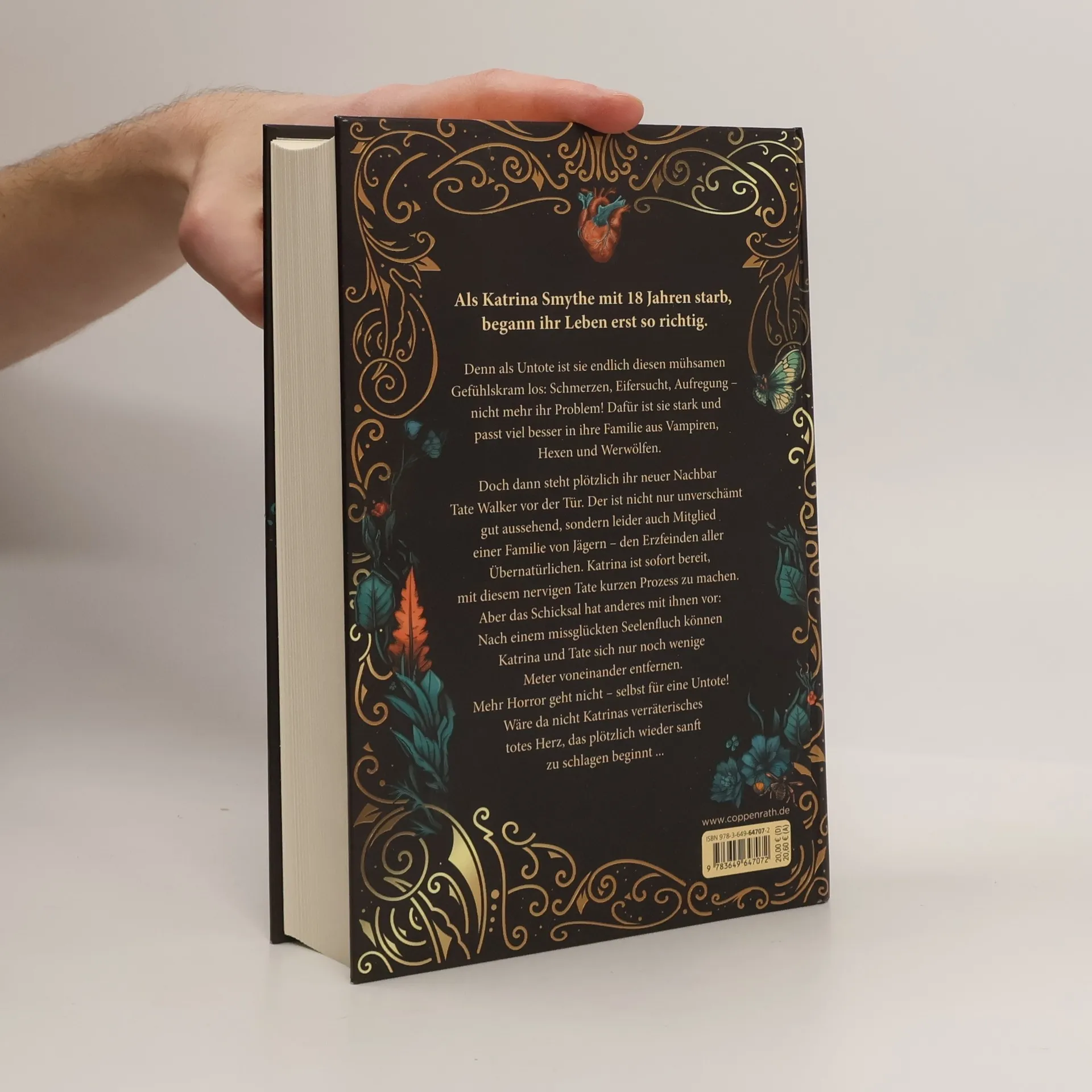 Hochwertige Ausgabe: Farbschnitt in der 1. Auflage, Goldfolie auf dem Cover und illustriertes Vor- und Nachsatzpapier Fühlst du meinen Herzschlag? Spürst du das Kribbeln auf der Haut? Das darf nicht echt sein! Katrina Smythe ist 18 Jahre alt, Highschool-Schülerin und seit einem Jahr untot. Ein Glücksfall, ist sie so doch endlich diesen mühsamen Gefühlskram los: Schmerzen, Eifersucht, Aufregung – nicht mehr ihr Problem! Dafür ist sie stark und passt viel besser in ihre außergewöhnliche Familie aus Vampiren, Hexen und Werwölfen. Doch alles ändert sich, als der neue Nachbarsjunge Tate Walker bei ihnen klingelt. Der ist nicht nur unverschämt gut aussehend, sondern leider auch Mitglied einer Familie von Jägern – den Erzfeinden aller Übernatürlichen. Katrina ist sofort bereit, mit diesem nervigen Tate kurzen Prozess zu machen. Aber dann geschieht das Unglaubliche: Die Walkers greifen nicht an, sondern bitten die Smythes um Hilfe. Und Katrina und Tate kommen sich näher als beiden lieb ist. Denn nach einem missglückten Seelenfluch können sie sich nur noch wenige Meter voneinander entfernen. Mehr Horror geht nicht – selbst für eine Untote! Wäre da nicht Katrinas verräterisches totes Herz, das plötzlich wieder sanft zu schlagen beginnt ... Band 1 des mitreißenden Enemies-to-lovers-Zweiteilers: verführerisch, witzig, herzergreifend Enemies to lovers, Haters to lovers, Forced Proximity, Paranormal Romance, Forbidden Love, Slow Burn