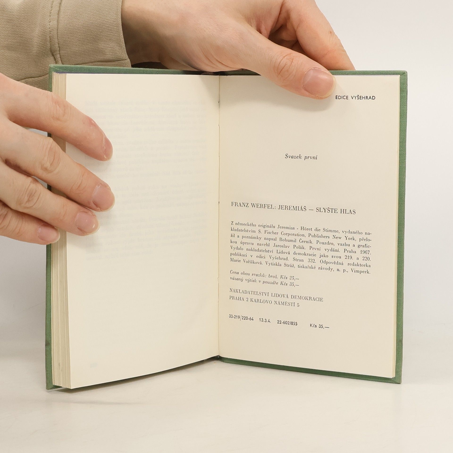 Životní příběh starozákonního proroka Jeremiáše byl a zůstává stále i naléhavým varováním před všemi podobami osobního a společenského násilí. Tak jej chápal i slavný pražský rodák Franz Werfel ve svém románu o těžké úloze této velké biblické postavy, Román vznikal pod vlivemtíživých událostí v Německu roku 1936, a to umocňovalo působnost dávného Jeremiášova poslání. Přestože již v roce 1933 byly v Německu spáleny všechny Werfelovy spisy, neváhal se svým novým dílem postavit sílící totalitní nacistické praxi a vůbec všem, pro něž byla vždy prvořadou jejich vlastní moc. Ve Werfelově pohledu se tak postava babylonského krále Nabukadnezara stávala snadno srovnatelnou s osobou Adolfa Hitlera, utrpení proroka Jeremiáše s utrpením Židů či zničením Jeruzaléma a jeho Chrámu roku 586 př. Kr., apokalyptickým obrazem budoucnosti Evropy ohrožené nacismem. I dnes si vynikající Werfelovo dílo zachovává svou aktuálnost. Vždyť totalitní myšlení nijak nevymizelo ze světového dění, jen jeho metody mění svou tvář. Dílo vyšlo ve dvou svazcích uložených ve společném pouzdře.