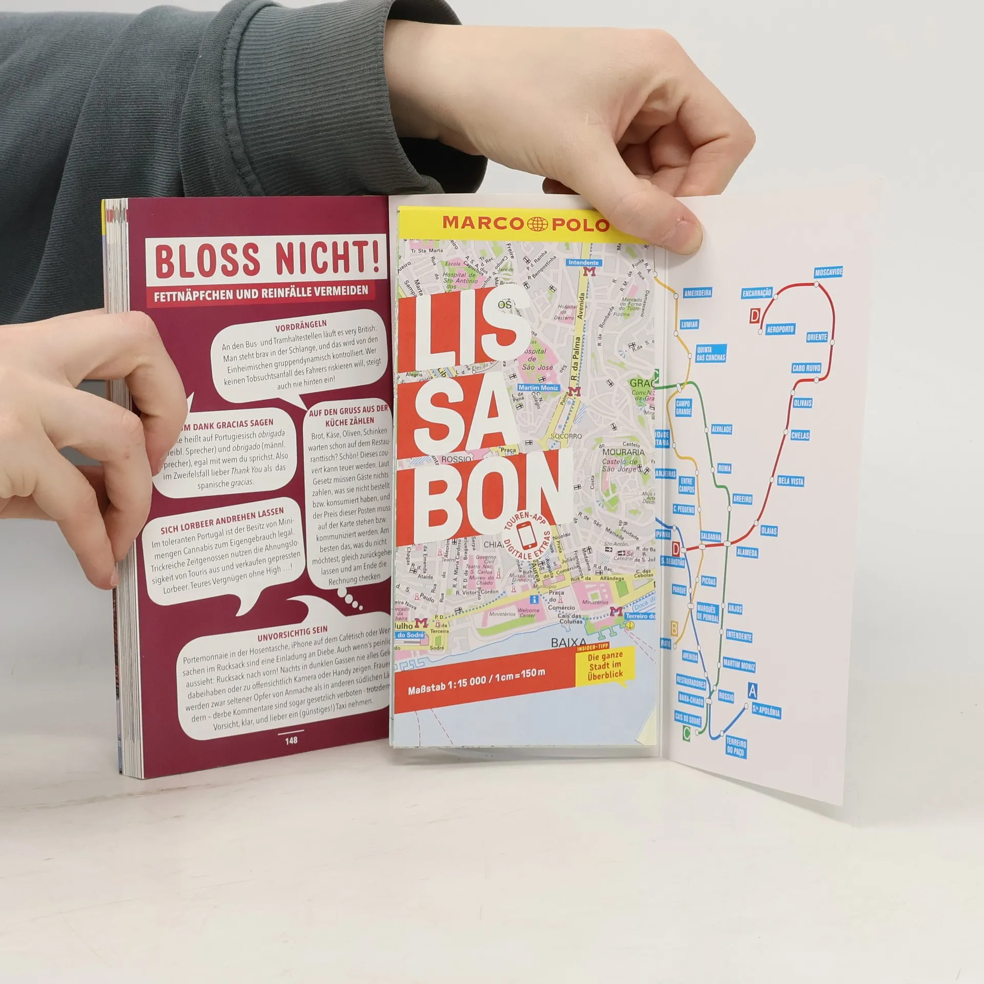 Erlebe die Hauptstadt Portugals mit dem MARCO POLO Reiseführer. Wechsle zwischen Ober- und Unterstadt mit den „Elevadores“, schlendere durch die engen Gassen der Altstadt und bewundere die kunstvollen „Azulejos“ an den Hausmauern. Gönn dir eine Pause in einem der vielen Cafés bei „Bica“ und „Natas“ – bei 2800 Sonnenstunden im Jahr sind Streifzüge durch die Stadt ein Muss. Mit den Empfehlungen aus dem Reiseführer verpasst du keine Sehenswürdigkeit! Entdecke die besten Tipps für Familienurlaube, Low-Budget-Reisen oder schlechtes Wetter. Stöbere in kleinen Läden oder stürze dich ins Getümmel großer Einkaufstempel, um die perfekten Souvenirs zu finden. Die Insider-Tipps und Erlebnistouren zeigen dir Lissabon aus der Perspektive der Einheimischen. Das Rundum-Sorglos-Paket beinhaltet einen Sprachführer für Grundkenntnisse Portugiesisch, die besten Fotospots und wichtige Hinweise, was du vermeiden solltest. Organisiere deinen Städtetrip unkompliziert mit der MARCO POLO-Reiseplaner-App. Stelle dir mit Stadtteilkarten und Rundgängen deine eigenen Touren zusammen, indem du die QR-Codes der Sehenswürdigkeiten scannst. Erkunde Kunst, Kultur und das Nachtleben von Lissabon, während du die besten Weine und die schönsten Plätze der Stadt entdeckst. Dein Städtetrip wird unvergesslich!