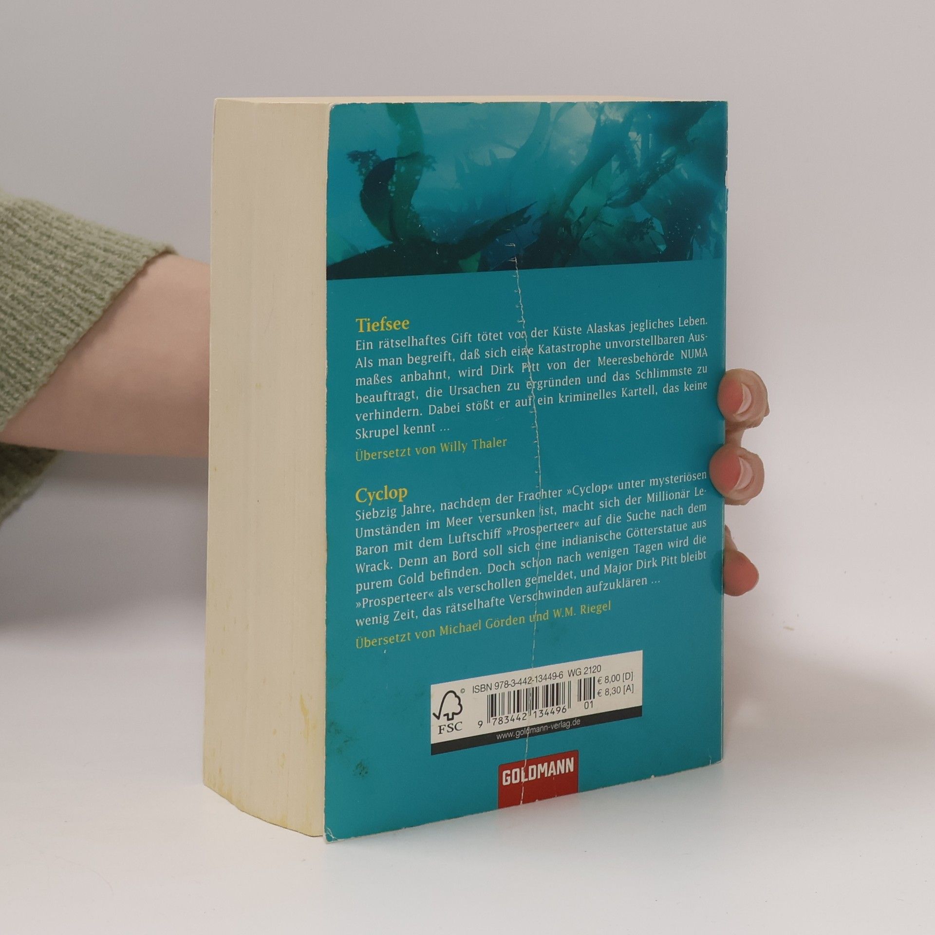 Zweimal Major Dirk Pitt in einem Band „Tiefsee“: Ein rätselhaftes Gift tötet vor der Küste Alaskas jegliches Leben. Als man begreift, dass sich eine Katastrophe unvorstellbaren Ausmaßes anbahnt, kann nur noch einer das Schlimmste verhindern: Dirk Pitt, Major der Meeresbehörde NUMA. Doch ihm stellt sich eine weltweit operierende kriminelle Organisation entgegen, die keinerlei Skrupel kennt. „Cyclop“: Der steinreiche amerikanische Verleger Raymond LeBaron macht sich mit dem Luftschiff „Prosperteer“ auf die Suche nach dem gesunkenen Wrack der „Cyclop“, denn an Bord soll sich angeblich die Statue einer Indianergöttin von unschätzbarem Wert befinden. Eine Woche später treibt die „Prosperteer“ mit drei unbekannten Leichen an Bord auf die Küste Miamis zu. Ein Fall für Dirk Pitt, Major der Meeresbehörde NUMA.