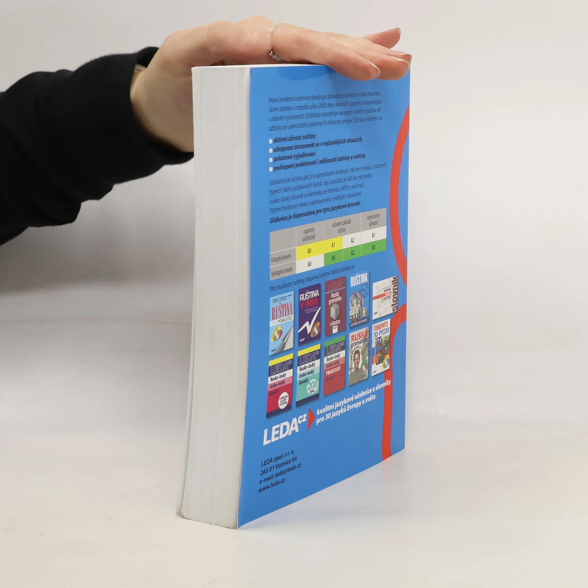 Nová, moderní učebnice přináší základní znalosti ruské mluvnice, slovní zásoby (v rozsahu přes 2000 slov a slovních spojení), frazeologie a výslovnosti. Učebnice umožňuje osvojení ruského jazyka od azbuky po samostatný písemný či mluvený projev. Důraz je kladen na aktivní užívání ruštiny, pochopení podobností i odlišnosti češtiny a ruštiny, schopnost dorozumět se v nejčastějších situacích a pohotové vyjadřování. Výběr témat z nejrůznějších oblastí běžného života vede k porozumění mluveného i čteného jazykového projevu, k nácviku vlastní aktivní konverzace i písemného vyjadřování. Součástí učebnice je brožura obsahující klíč ke cvičením a rusko-český slovník, vloženo je též CD s MP3 soubory s více než čtyřmi hodinami nahrávek úvodních textů a většiny cvičení. Učebnice je určena jak pro samostatné studium, tak pro výuku v různých typech škol (základních, středních i vysokých) a v jazykových kursech. Cílem učebnice je zvládnutí ruštiny na středně pokročilé úrovni (stupeň B2 Evropského jazykového rámce).