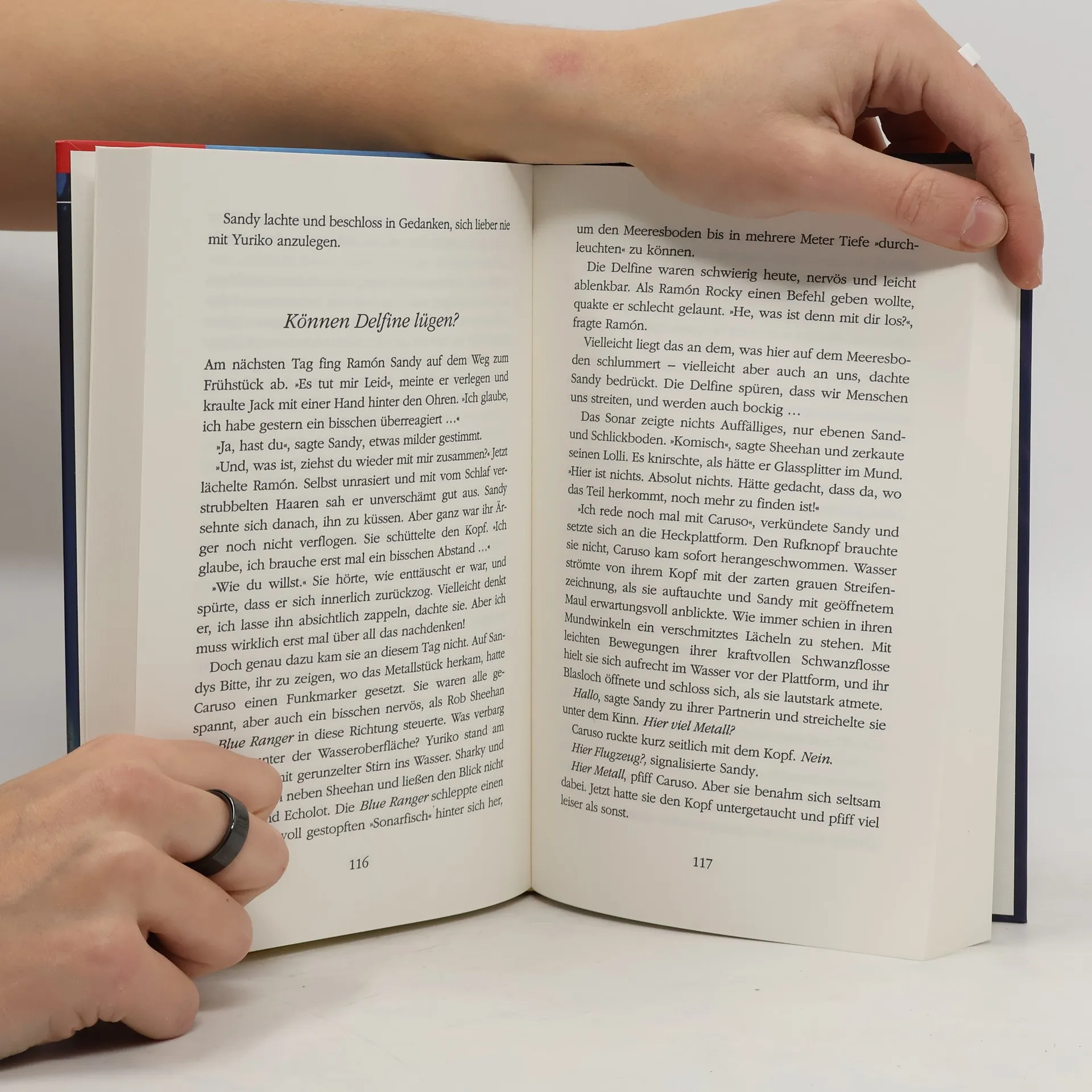 Sandy arbeitet als Taucherin zusammen mit ihrer Partnerin, dem Delfin-Weibchen Caruso, bei dem Unternehmen The Deep in Florida, die Aufträge in aller Welt annehmen. Nachdem sie ihren 1. gefährlichen Auftrag hinter sich hat (vgl. BA 11/04), hat sich Sandra in ihrem Delfin-Team etabliert. Sie trifft sich mit Ramon, einem ehemaligen US-Navy-Kampfschwimmer wieder, dem sie bei ihrem 1. Auftrag das Leben gerettet hat, und zwischen den beiden funkt es heftig. Sandy ist total begeistert, als Ramon das Angebot bekommt, ebenfalls bei The Deep einzusteigen. Sharky ist davon überhaupt nicht angetan, da er selbst ein Auge auf Sandy geworfen hat. Aber dann überstürzen sich die Ereignisse, da das Delfin-Team den Auftrag einer Reederei bekommt, das Geheimnis um das sagenumwobene Gebiet des Bermuda-Dreiecks zu lüften, da sie dort bereits 2 Schiffe verloren haben. Auch im 2. Band ist der Autorin ein spannender Krimi gelungen, in dem man ihre Liebe zu Delfinen spüren kann, und der v.a. bei Mädchen auch wegen der nicht zu kurz kommenden Liebesgeschichte sehr gut ankommen wird. Überall sehr gut einsetzbar.. - Sandy arbeitet zusammen mit ihrer Partnerin, dem Delfin-Weibchen Caruso, bei dem Unternehmen The Deep, die Aufträge in aller Welt annehmen.Sie bekommen den Auftrag von einer Reederei, die sagenumwobenen Geheimnisse des Bermuda-Dreiecks zu lüften, da sie dort bereits 2 Schiffe verloren haben. Ab 13