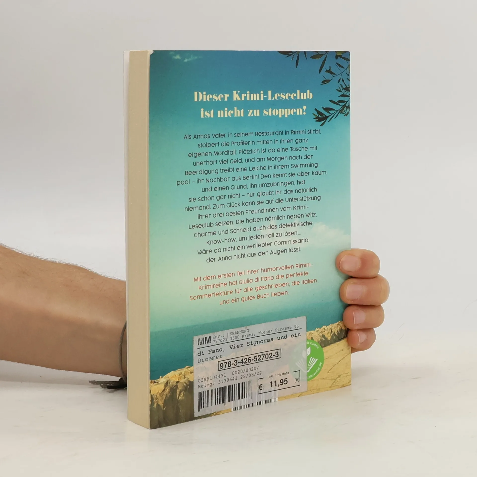 Vorsicht vor dem Krimi-Leseclub aus Rimini! Humorvolle Spannung und eine große Portion Urlaubsflair bietet der Rimini-Krimi »Vier Signoras und ein Todesfall«, der Auftakt von Giulia di Fanos Urlaubskrimi-Reihe rund um die Halb-Italienerin und Profilerin Anna Kristina Antonelli und ihre drei patenten Freundinnen vom Krimi-Leseclub. Als Annas Vater in seinem Restaurant in Rimini stirbt, stolpert die Profilerin mitten in ihren ganz eigenen Mordfall: Plötzlich ist da eine Tasche mit unerhört viel Geld und am Morgen nach der Beerdigung treibt eine Leiche in ihrem Swimmingpool – ausgerechnet ihr Nachbar aus Berlin! Den kennt sie aber kaum und einen Grund, ihn umzubringen, hat sie schon gar nicht – nur glaubt ihr das natürlich niemand. Zum Glück kann sie auf die Unterstützung ihrer drei besten Freundinnen vom Krimi-Leseclub setzen. Die haben nämlich neben Witz, Charme und Schneid auch dank ihrer Leseleidenschaft das detektivische Know-How, um jeden Fall zu lösen und ihrer Freundin aus dem Schlamassel zu helfen … Wäre da nicht ein gewisser verliebter Commissario, der Anna nicht aus den Augen lässt. Mit dem 1. Teil ihrer humorvollen Rimini-Krimireihe hat Giulia di Fano die perfekte Urlaubs-Lektüre für alle geschrieben, die Italien lieben, und von spannenden Krimis in traumhafter Urlaubs-Kulisse nicht genug kriegen können.