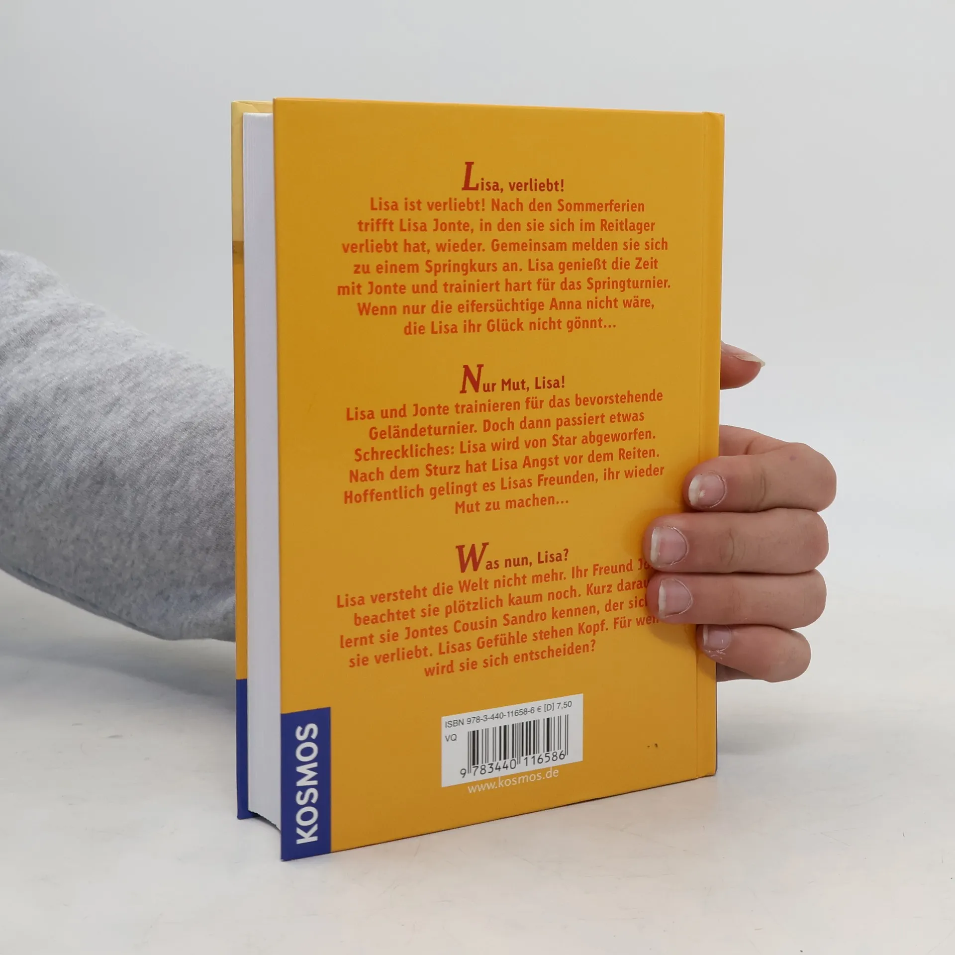 Drei spannende Abenteuer in einem Band. Lisa, verliebt!: Lisa ist verliebt! Nach den Sommerferien trifft Lisa Jonte, in den sie sich im Reitlager verliebt hat, wieder. Gemeinsam melden sie sich zu einem Springkurs an. Lisa genießt die Zeit mit Jonte und trainiert hart für das Springturnier. Wenn nur die eifersüchtige Anna nicht wäre, die Lisa ihr Glück nicht gönnt. Nur Mut, Lisa!: Lisa und Jonte trainieren für das bevorstehende Geländeturnier. Doch dann passiert etwas Schreckliches: Lisa wird von Star abgeworfen. Nach dem Sturz hat Lisa Angst vor dem Reiten. Hoffentlich gelingt es Lisas Freunden, ihr wieder Mut zu machen. Was nun, Lisa?: Lisa versteht die Welt nicht mehr. Ihr Freund Jonte beachtet sie plötzlich kaum noch. Kurz darauf lernt sie Jontes Cousin Sandro kennen, der sich in sie verliebt. Lisas Gefühle stehen Kopf. Für wen wird sie sich entscheiden?